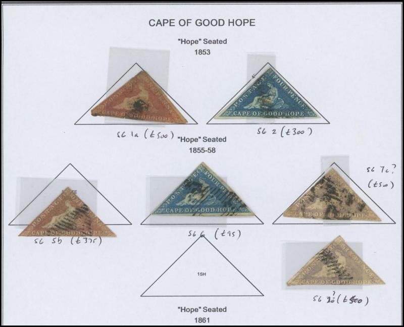 (a few with minor gum tropicalisation), Somaliland 1903 Overprints on India Officials set *, and South Africa 1913-24 KGV Heads set to 10/- * plus extra 5/- shade, also Cape of Good Hope 1853-63 Triangles Perkins Bacon Printings Blued Paper 1d pale