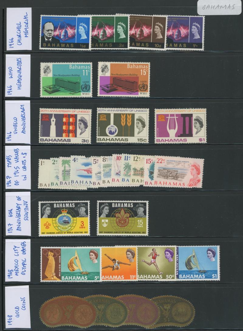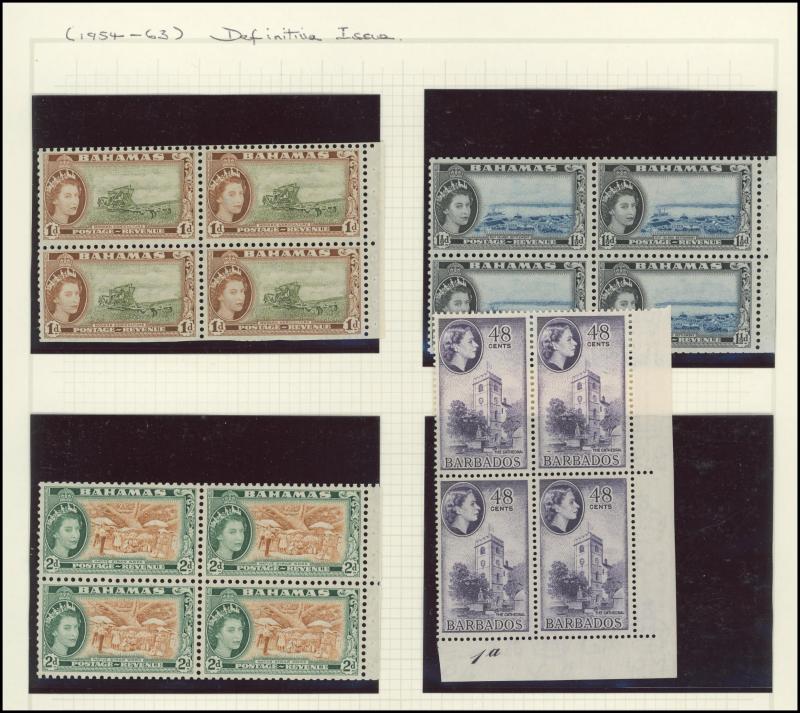 1884-87 Crown CA Wmk 1/- * x2 & used plus 1932 Tercentenary set *, Bahamas 1861-62 QV No Wmk 1d, 1863-77 Crown CC Wmk 4d & 6d and 1994-90 Keyplates £1 all used plus 1902-07 KEVII Keyplates set to 5/- & 1911-19 KGV £1 *, Barbuda 1922 Overprints on