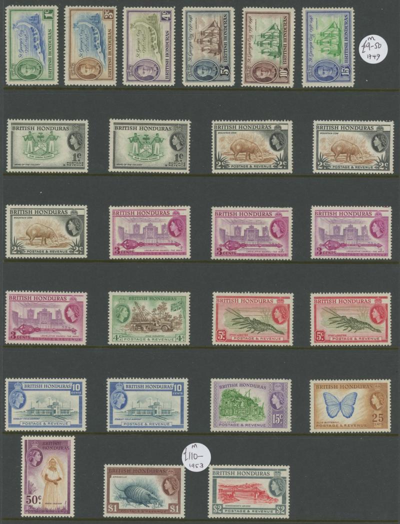 British Guiana 1889 Ship1c block of 4 & 2c block of 6 */** and 1934-51 KGV Pictorials set, British Honduras 1865 QV 1d blue (SG 1) and 1938-47 KGVI Pictorials set, Cyprus 1935 KGV Pictorials set * plus 6p & 18p used, 1938-51 KGVI Pictorials set *,