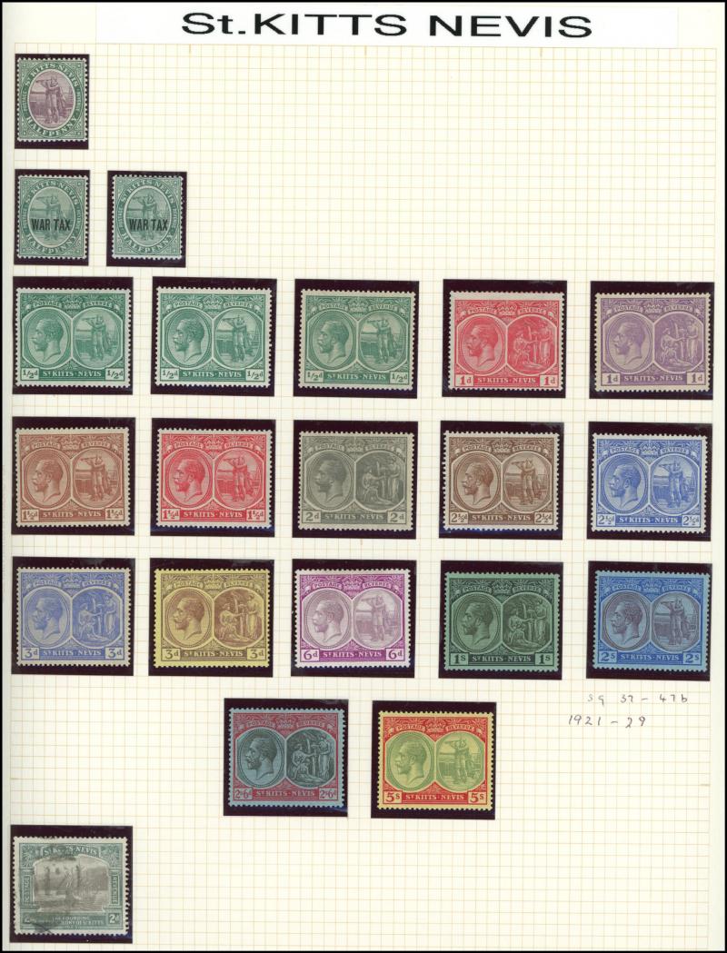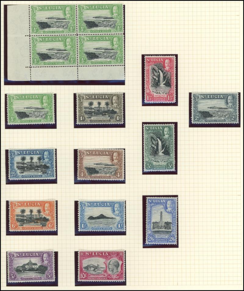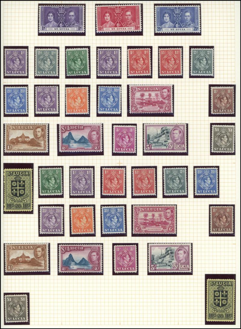 1925-29 KGV Giraffes & Elephants set to 2/-, 1938-52 KGVI complete set & 1948 Wedding *, St Kitts-Nevis 1921-29 KGV Badge Multiple Script CA Wmk set plus Nevis 1862 Badge Grey Paper 1d lake * (SG 1), St Lucia 1936 KGV Pictorials & 1938-48 KGVI