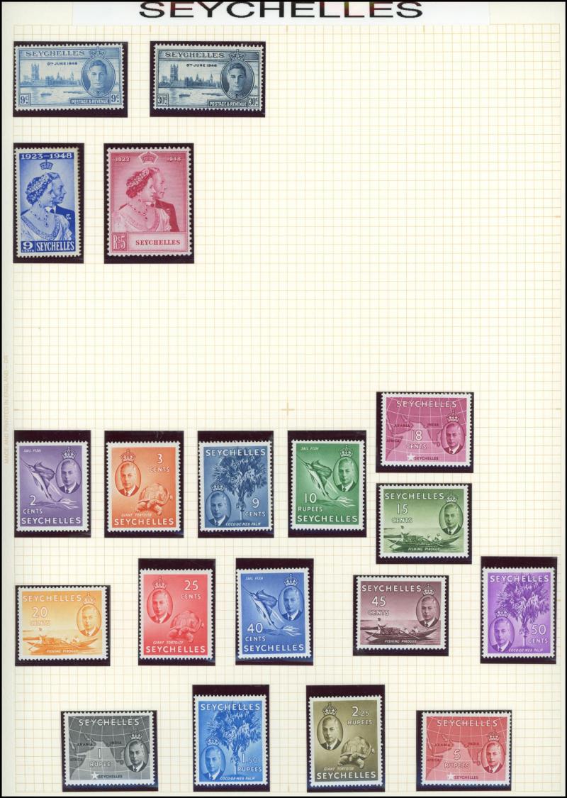 Pictorials, St Vincent 1885-93 QV 6d violet & 1921-32 KGV & Badge Multiple Script CA Wmk set, Seychelles 1938-49 KGVI Pictorials simplified set, 1948 Wedding & 1952 KGVI Pictorials, Solomon Islands 1908-11 Small Canoes set, Southern Rhodesia 1937