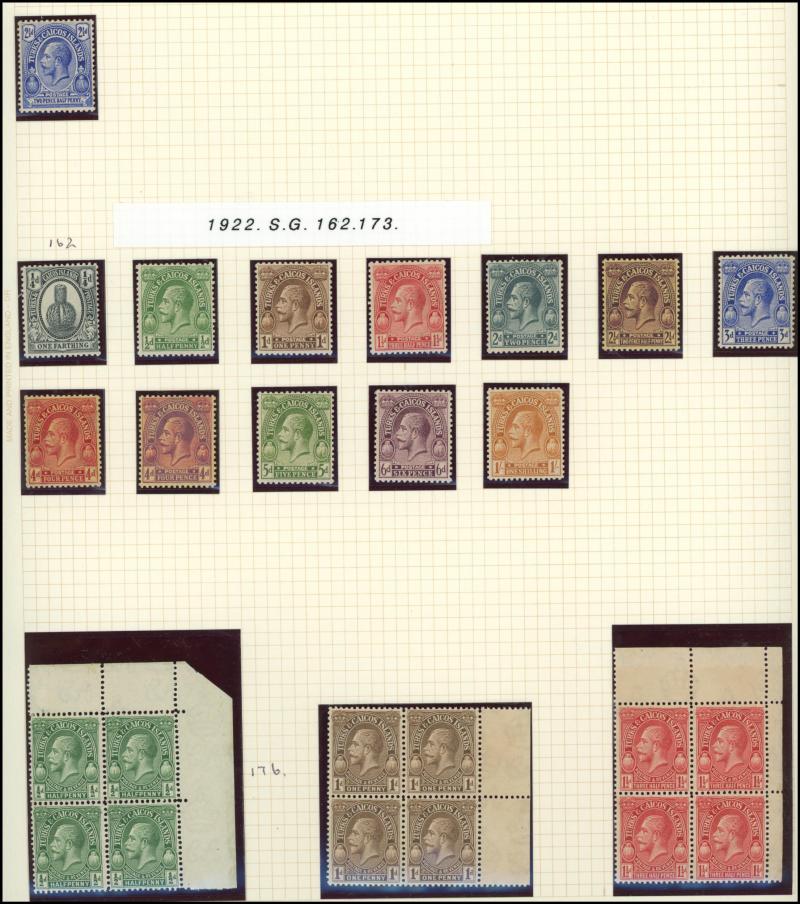 1863 Crown CC Wmk 4d & 6d all unused, 1882-84 Surcharges Perf 14 ½d to 1/- set * (the 1/- unused) and 1883-86 QV Keyplated 6d lilac very fine used, Trinidad 1904-09 Multiple Crown CA Wmk Britannia £1 green & red *, Turks & Caicos Islands 1900-04