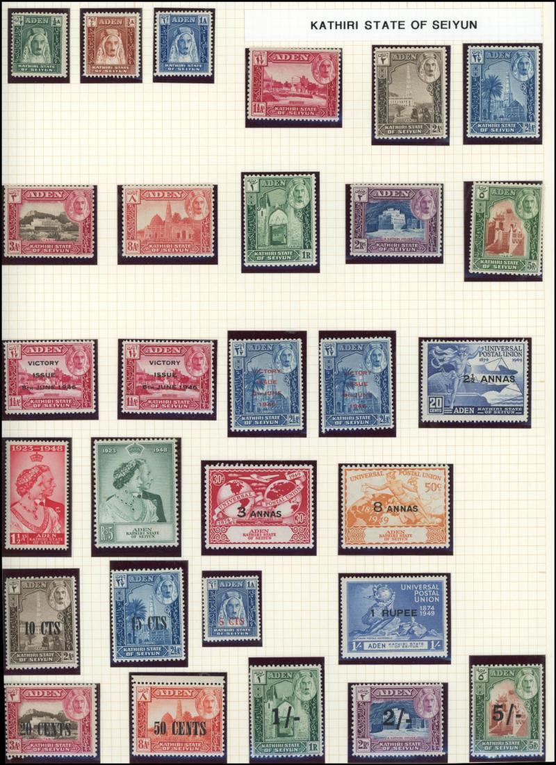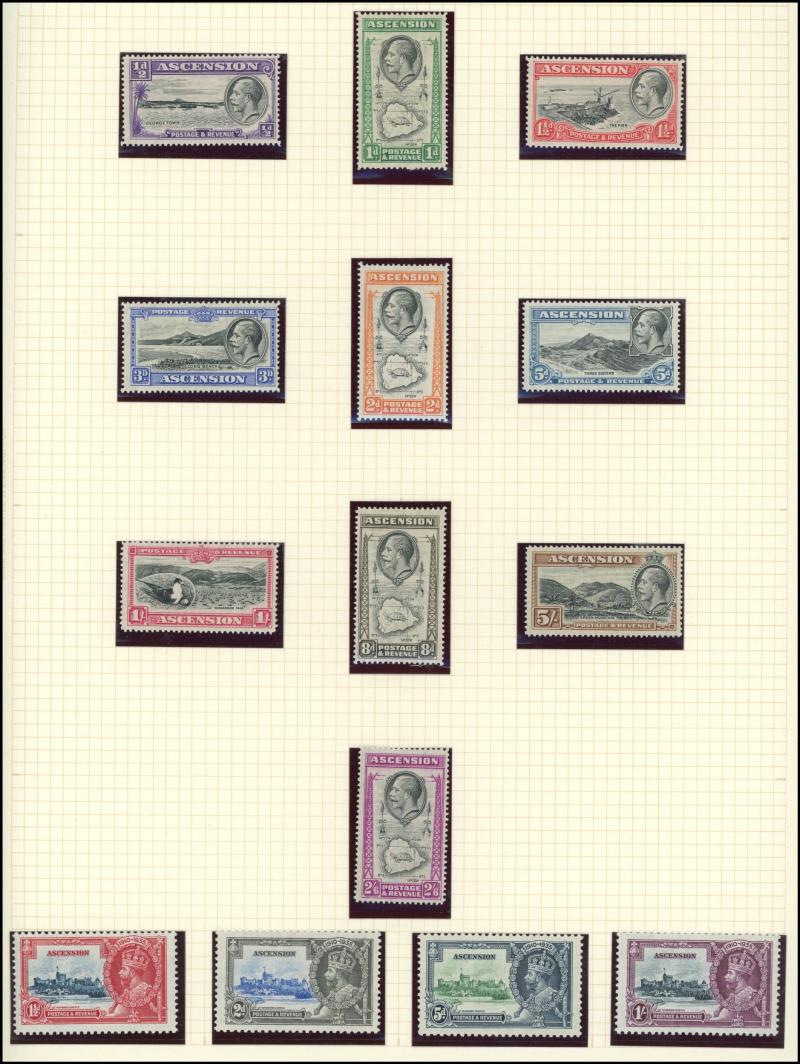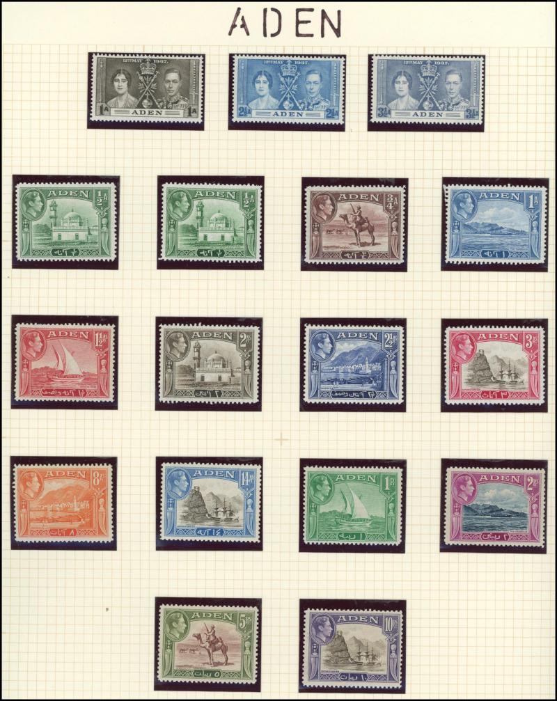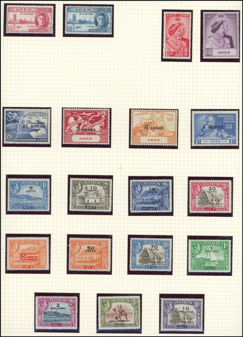 including Aden 1939-48 KGVI Pictorials, 1948 Wedding & 1951 New Currency overprints plus similar States issues, Ascension 1924-33 Badge set to 2/-, 1934 KGV Pictorials set complete & 1938-53 KGVI Pictorials simplified set, Barbados 1921 Victory,