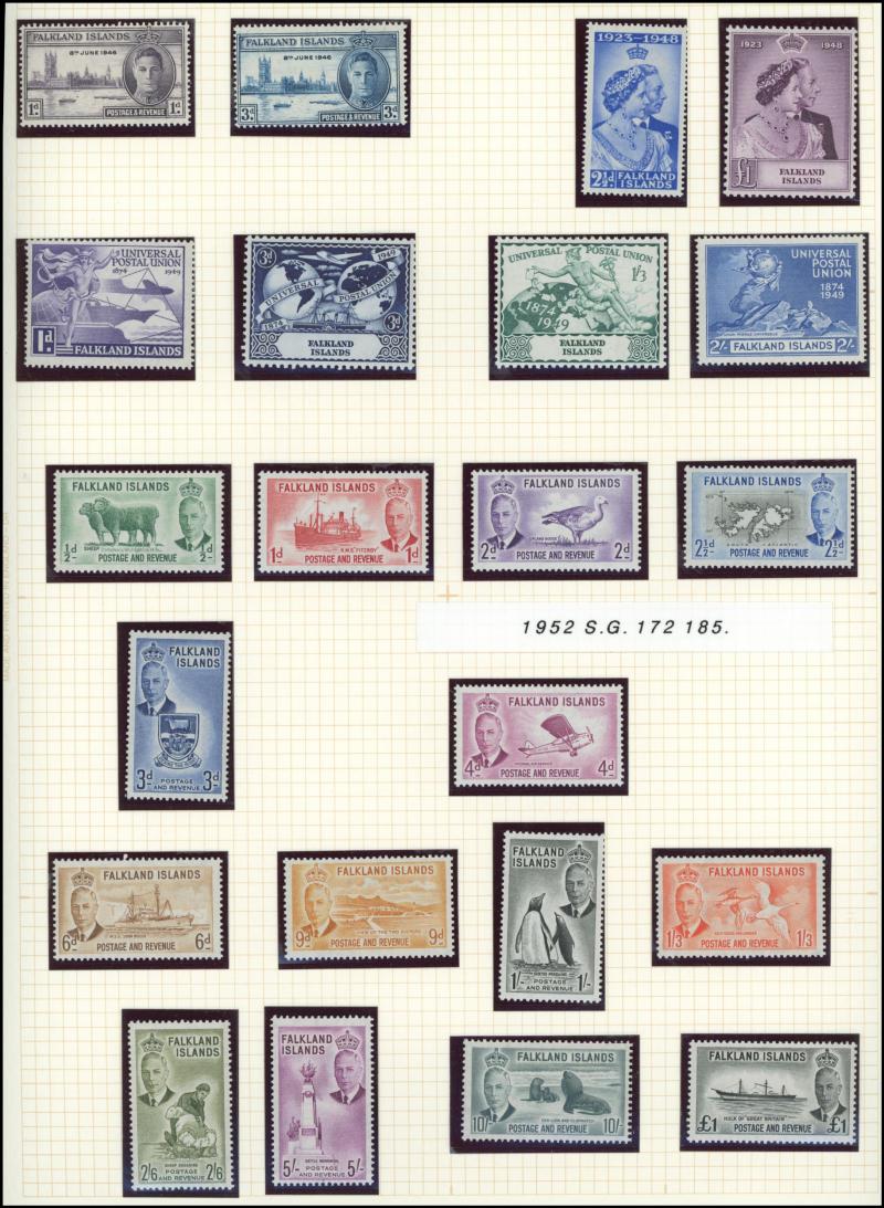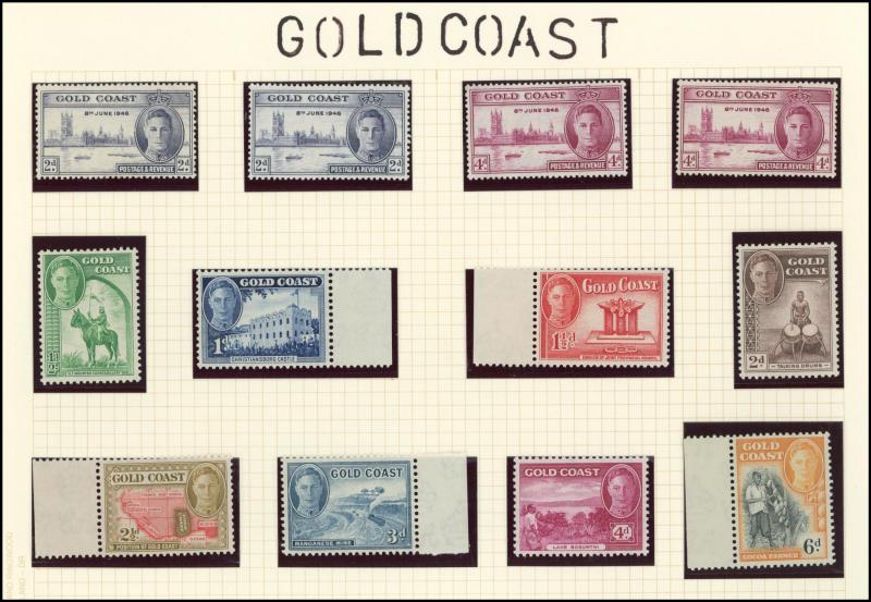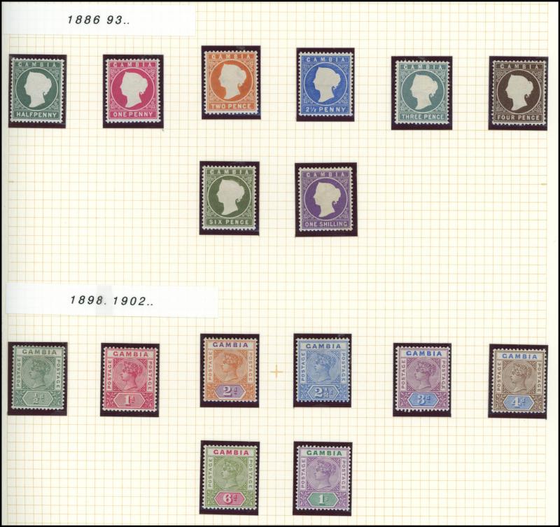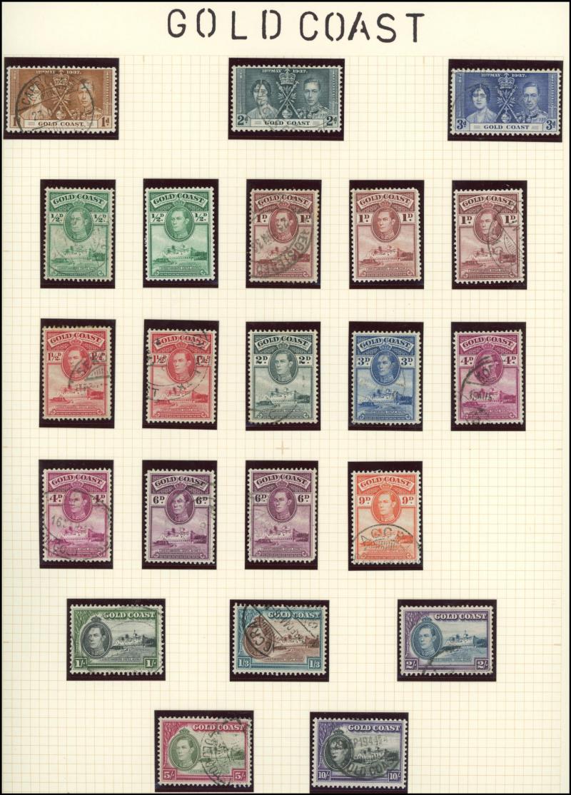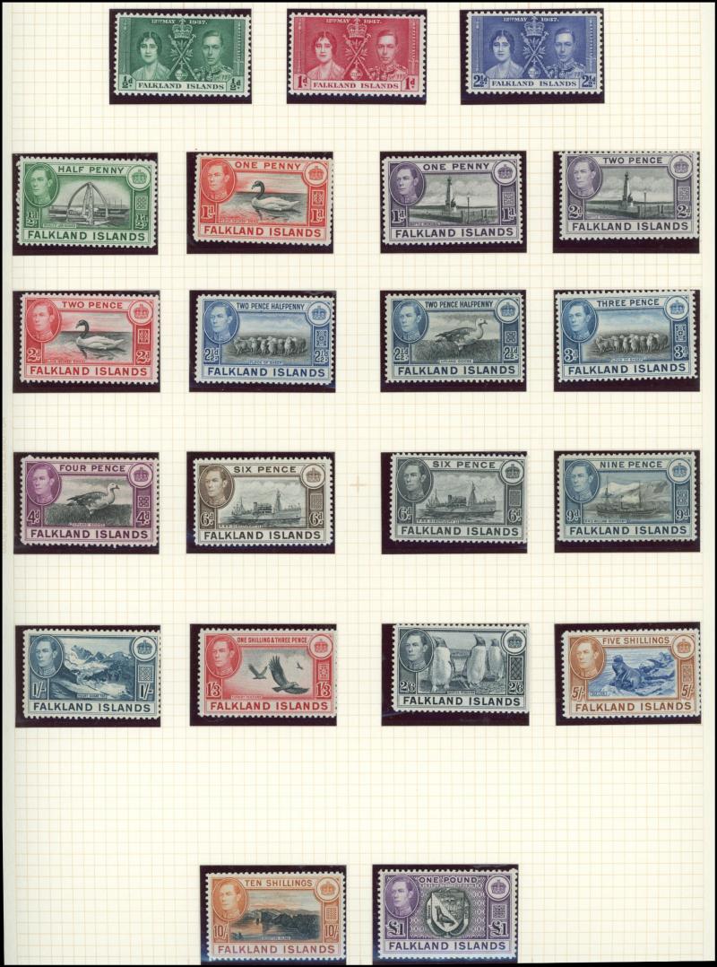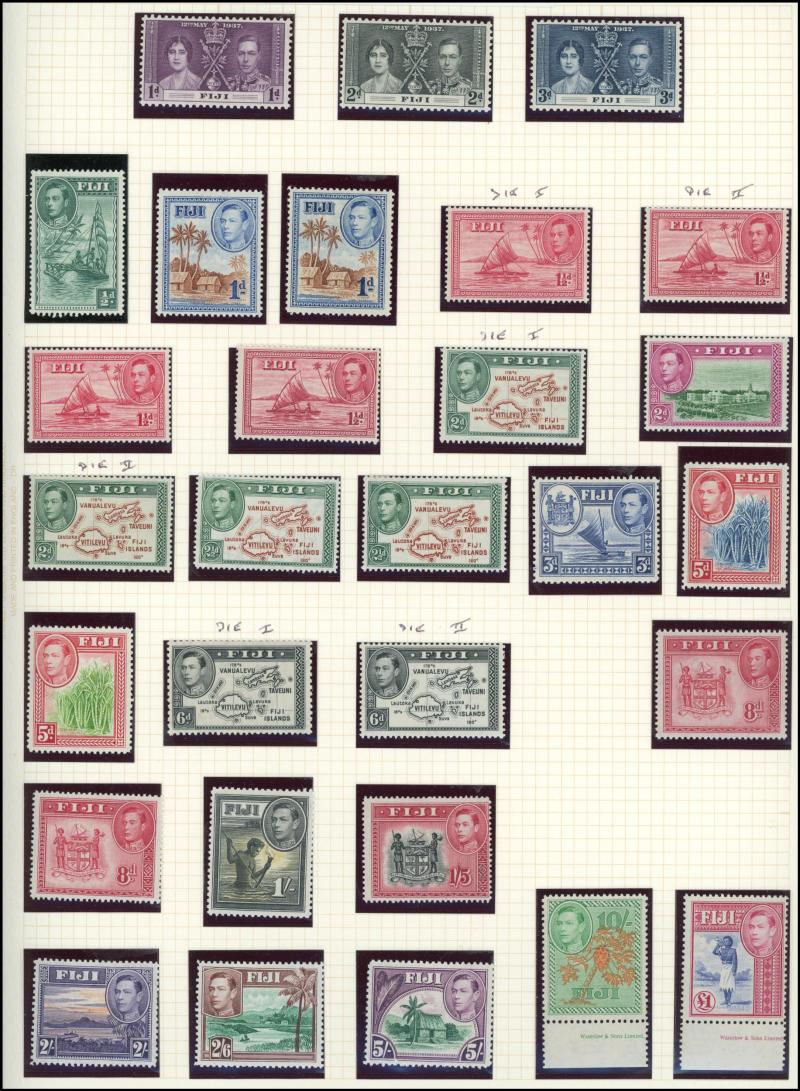 Falkland Islands 1938-50 KGVI Pictorials simplified set, 1948 Wedding & 1952 Pictorials, Fiji 1938-55 KGVI Pictorials set with extra Dies & colours, Gambia 1886-93 QV Cameos Crown CA Wmk set & 1898-1902 QV Keyplates set, Gold Coast 1884-91 QV set *,