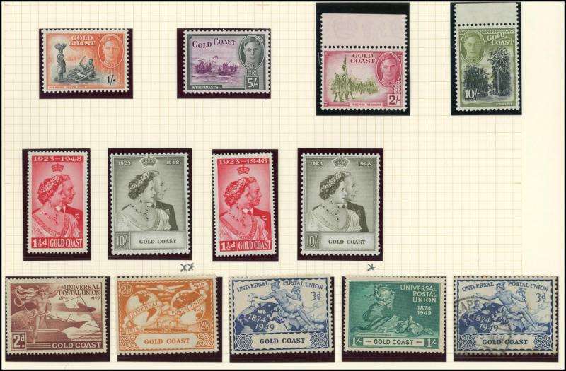 cancel (not counted), 1913-24 Overprints on GB Seahorses 2/6d & 5/- *, and 1932 KGV Cattle 2/-, 2/6d, 3/- & 5/- used, Gold Coast 1889-94 QV Keyplates 20/- * & 1902 KEVII Keyplates 20/- Perforated '05' Inverted used, KUT 1935-37 KGV Pictorials 3/-,