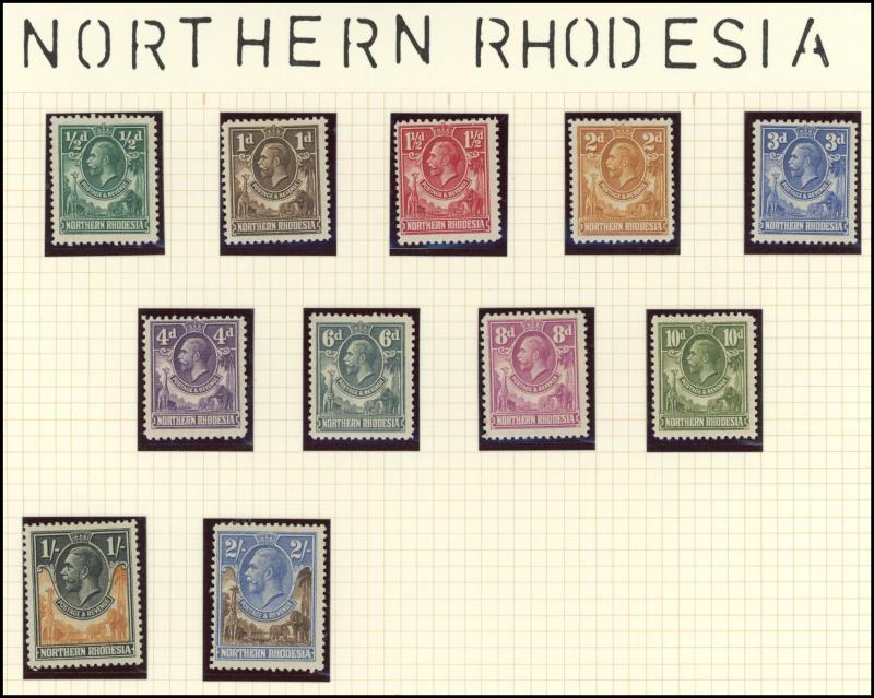 Southern Rhodesia 1924-29 KGV Admirals set *, Sierra Leone 1903 KEVII Keyplates Crown CA Wmk £1 purple/red * & 1907-12 Multiple Crown CA Wmk £1 purple & black/red * plus another with Madame Joseph forged cancel (not counted) and 1932 KGV Palms set *