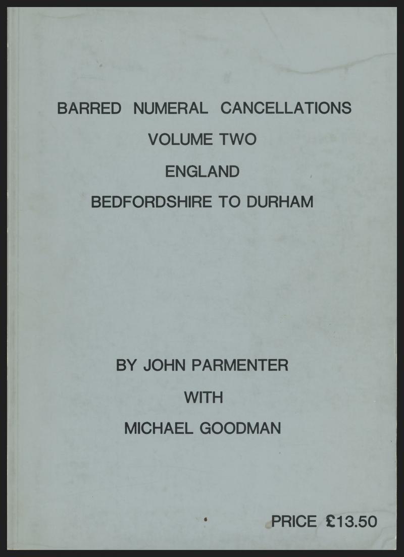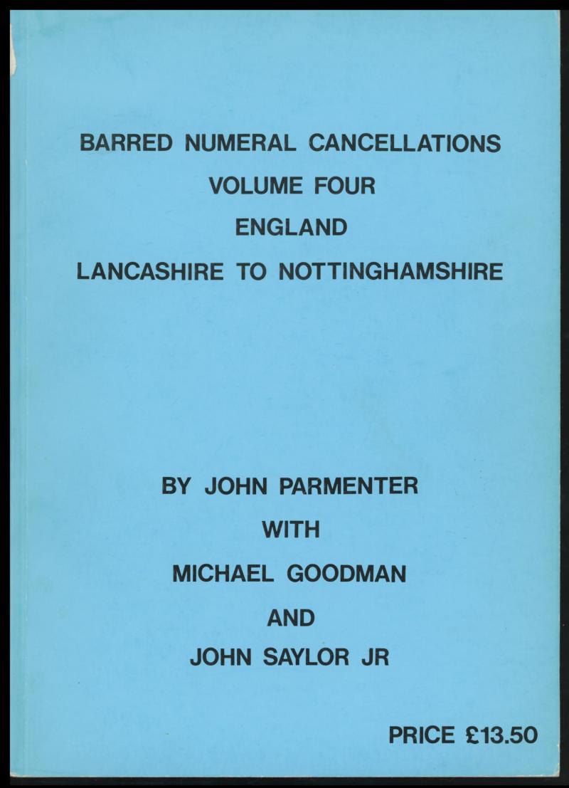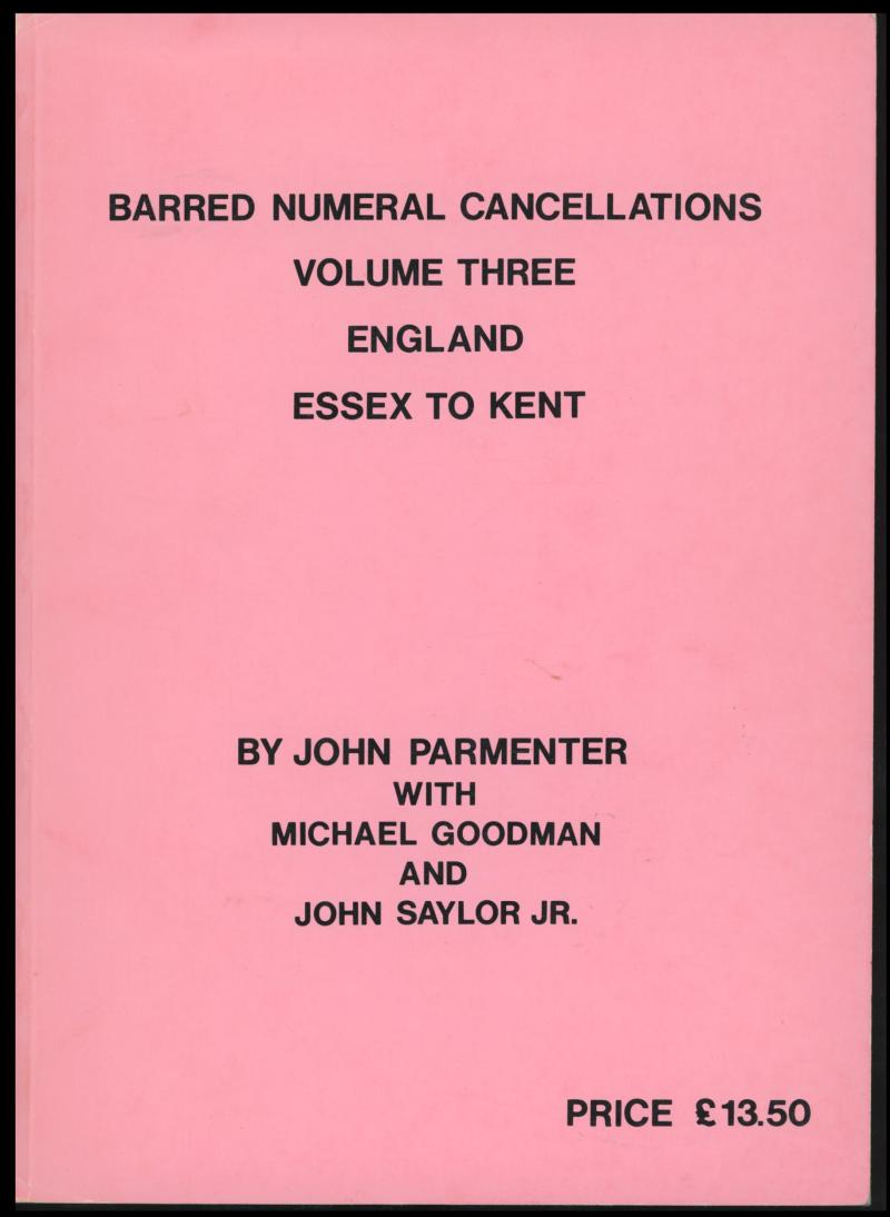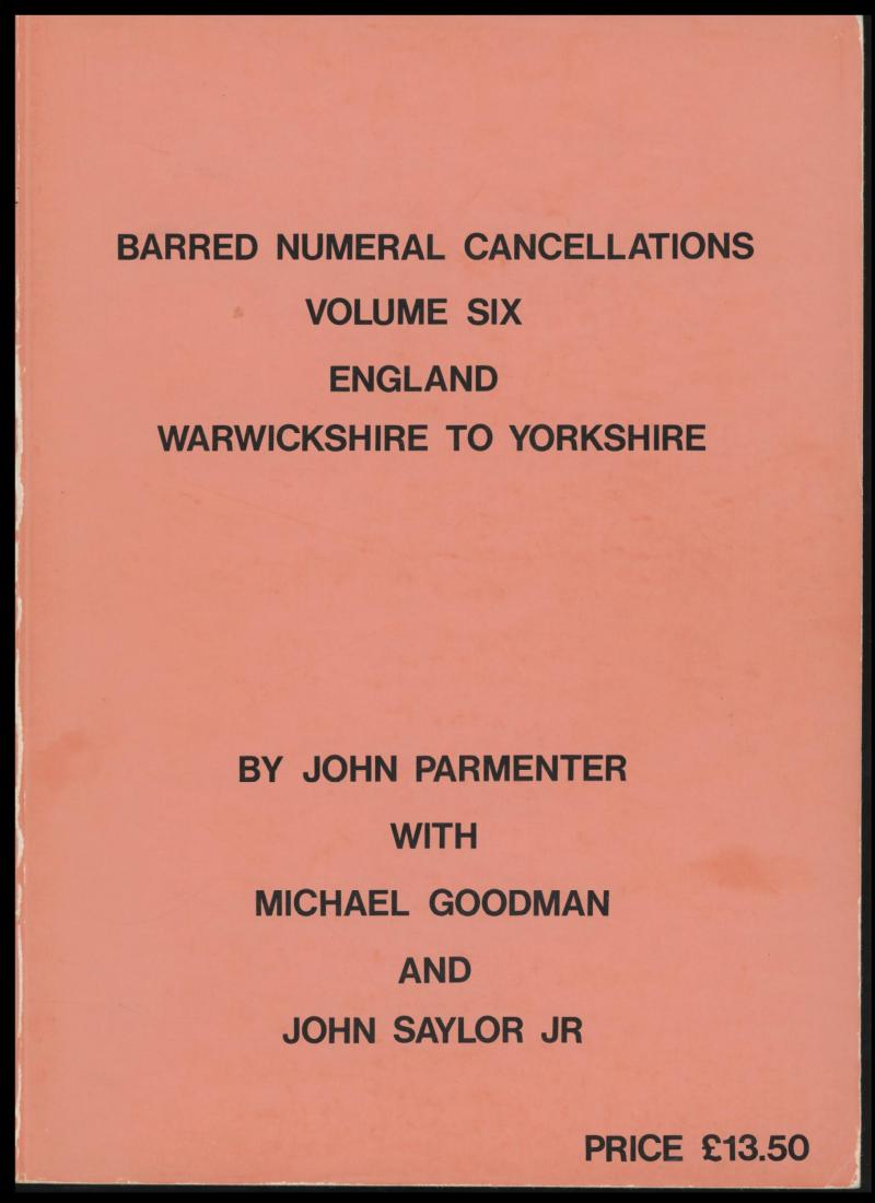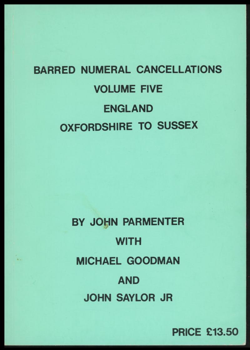 POSTMARKS: 'Barred Numeral Cancellations of England' (Vols 2-6) by Parmenter et al (1984-88), 1000+ pp soft-bound. A popular