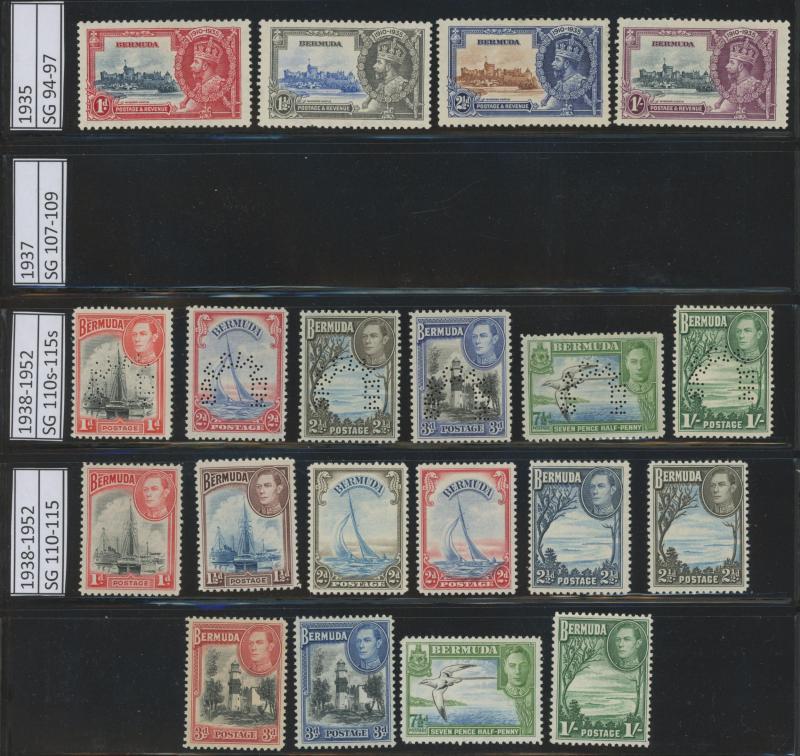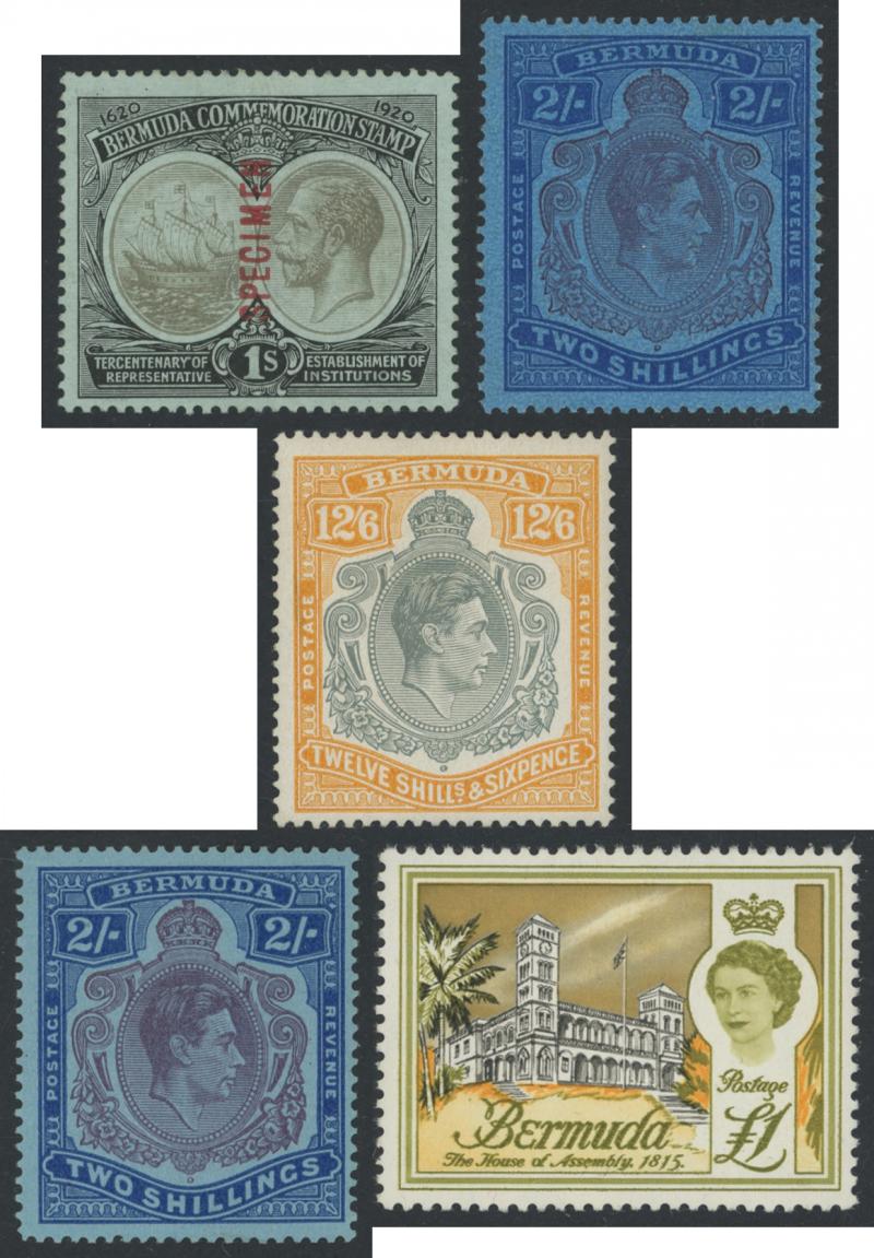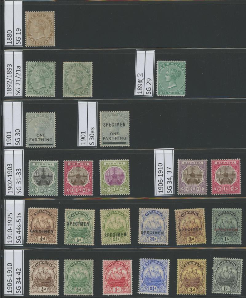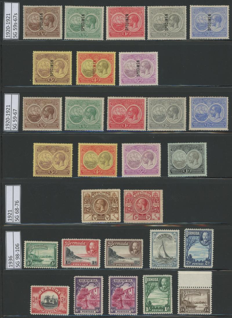 and 1906-10 sets, 1910-25 set x2 (one overprinted 'SPECIMEN'), 1918-22 KGV Keyplates MCA Watermark to 5/-, 1920-21 Tercentenary First Issue set x2 (one overprinted 'SPECIMEN'), 1936-47 KGV set,1938-52 KGVI to 1/- x2 ( one perf 'SPECIMEN'), 1938-53