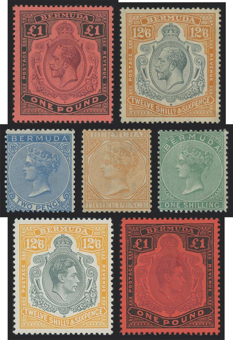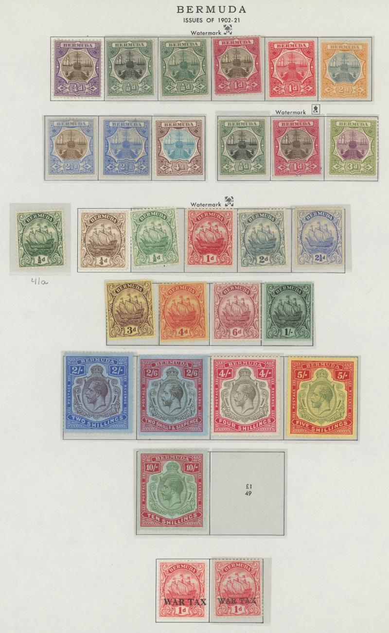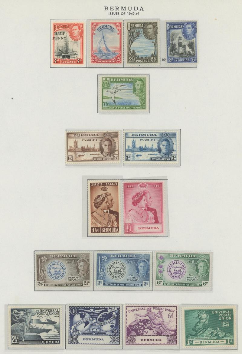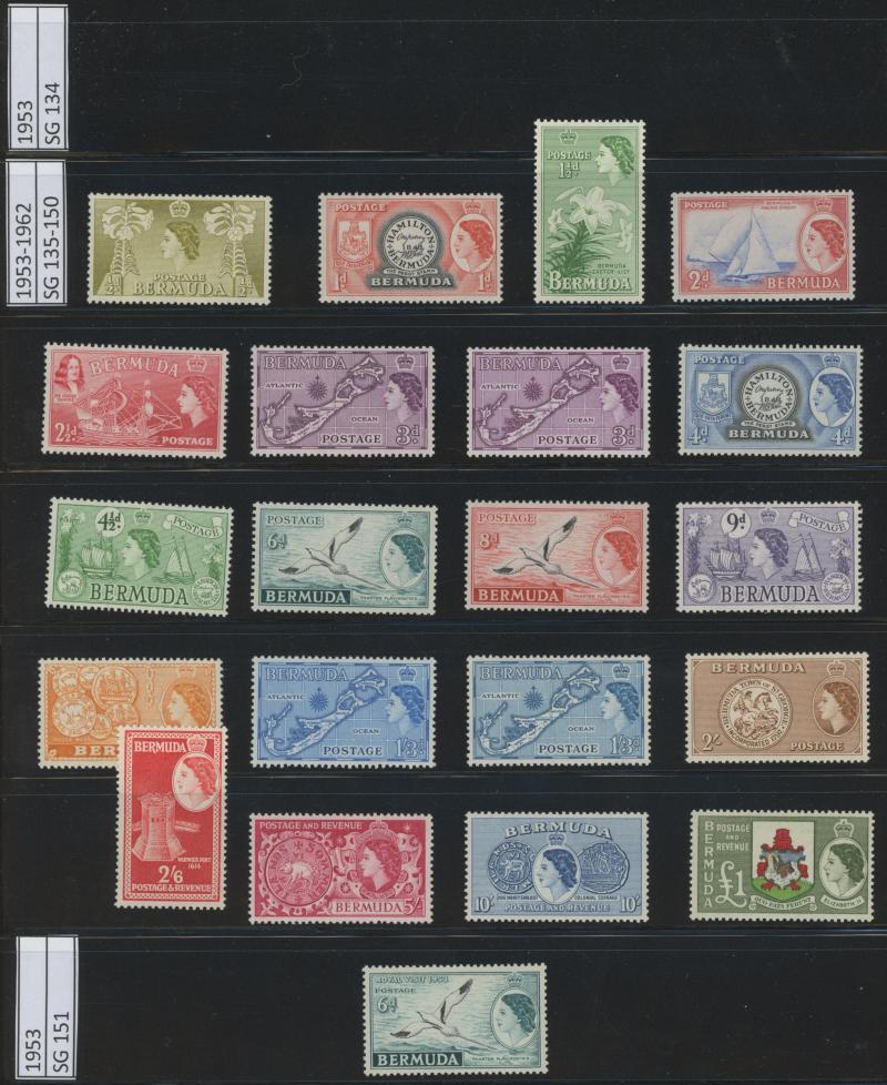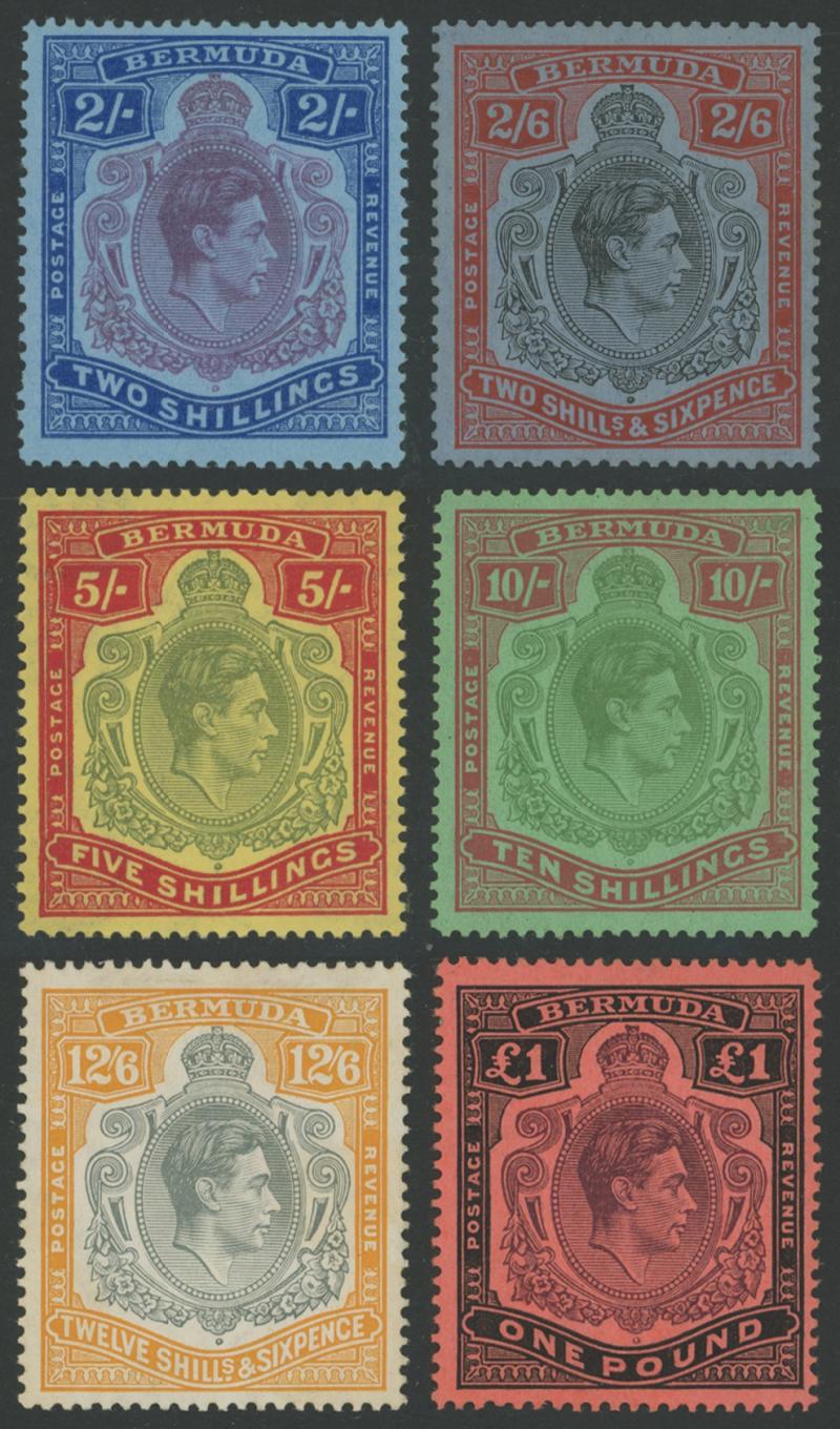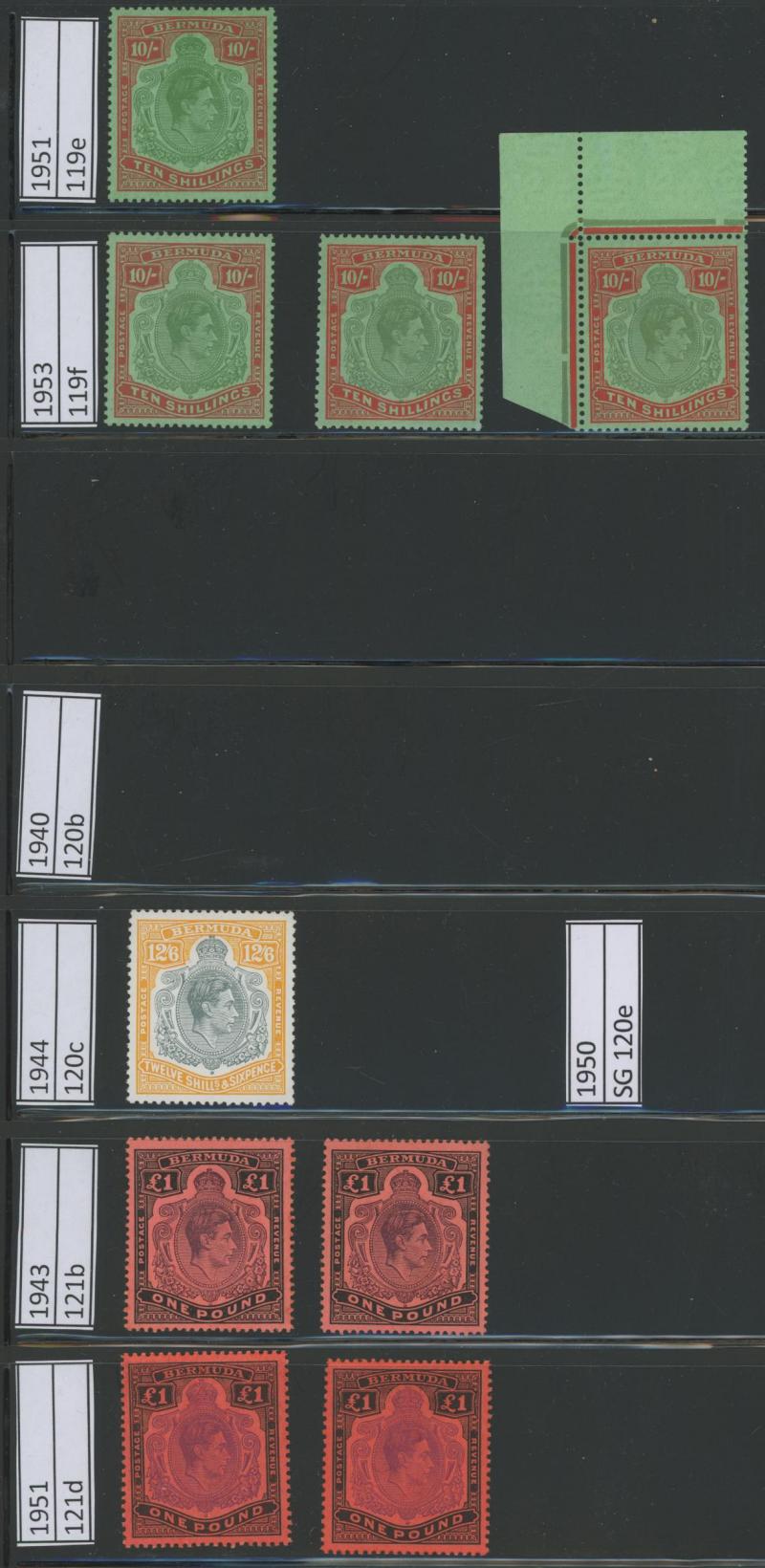 Chalk Surfaced Paper 12/- 6d SG 120b *, 1944 Ordinary Paper 12/- 6d *, 1943 perf 14 £1 SG 121b x2 *, 1951 perf 13 SG 121d x2 */**, 1953 QEII Pictorial set 10/- and £1 unmounted */**, 1962 Harrison set, etc, generally fine to very fine, Cat £3900+.
