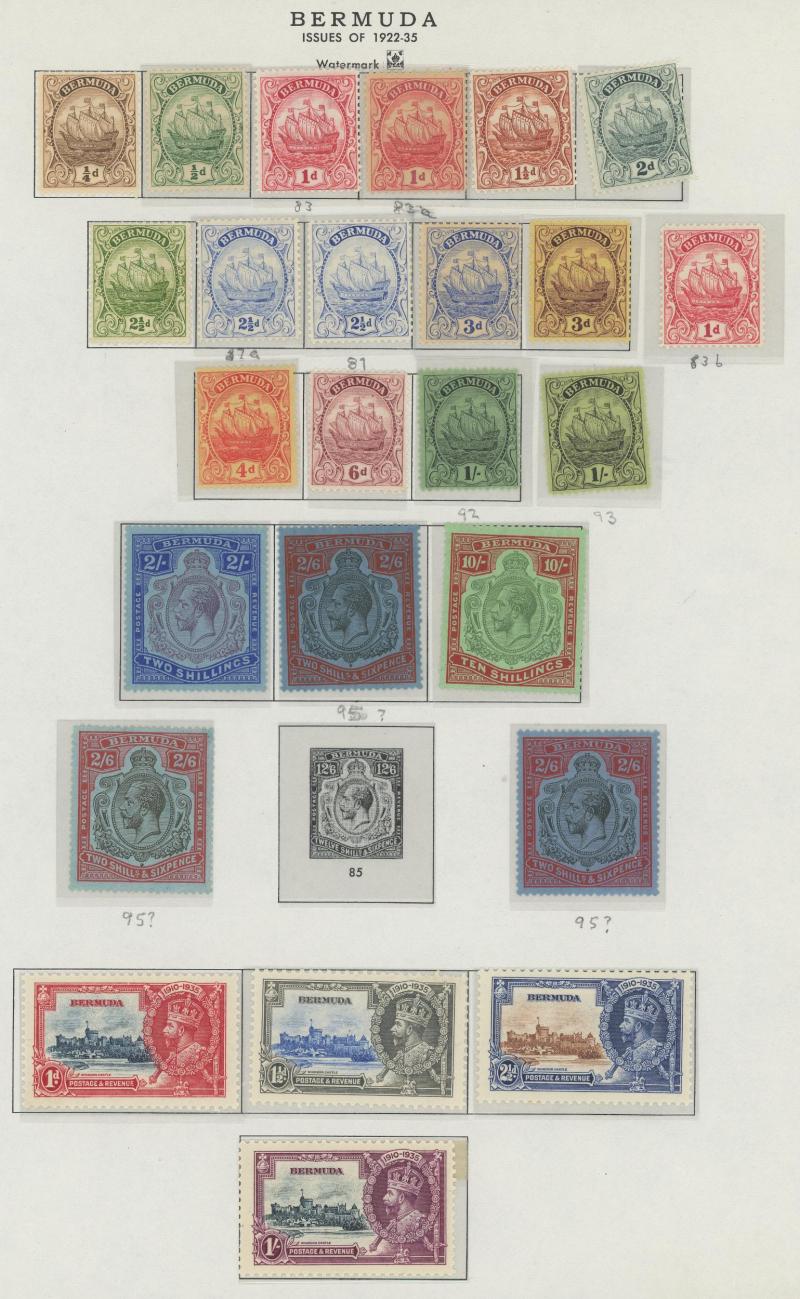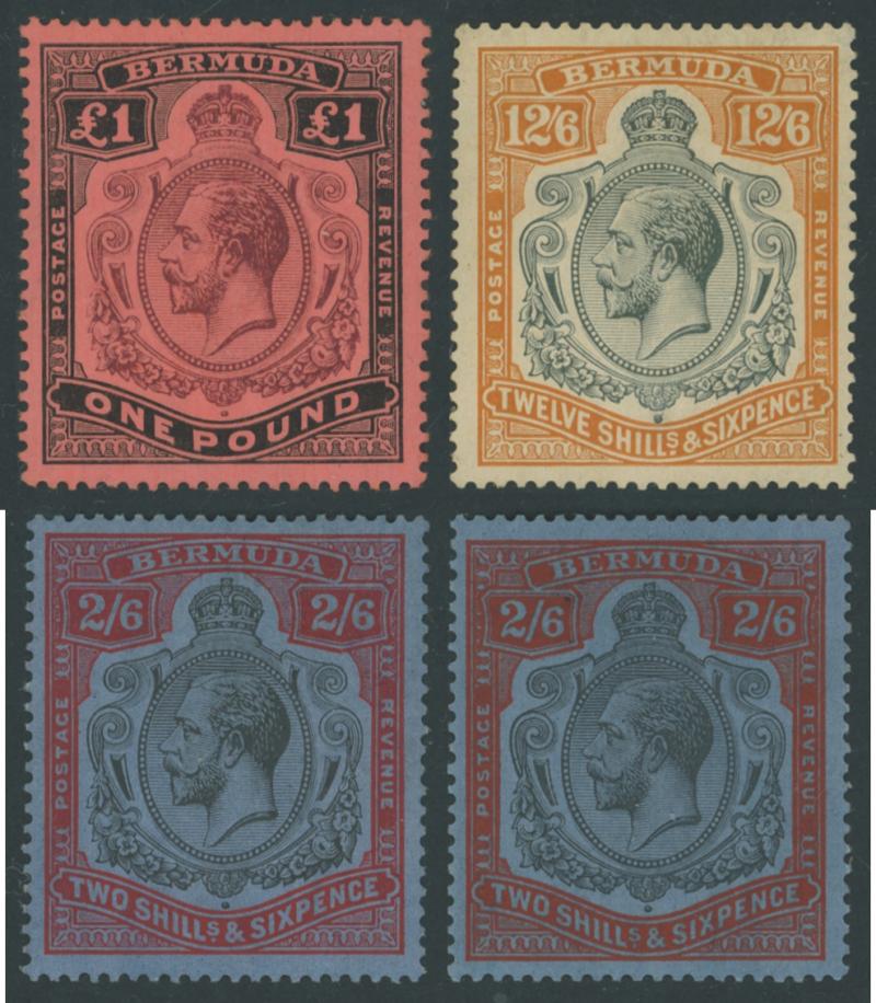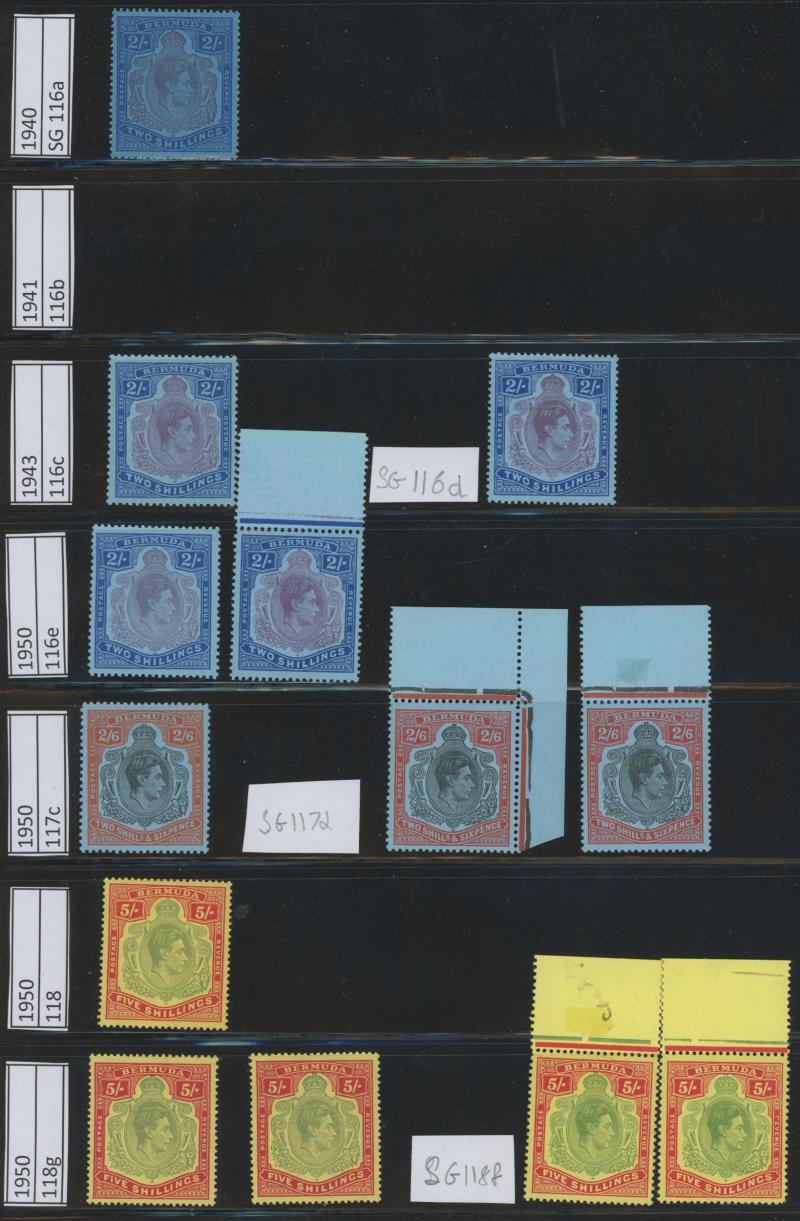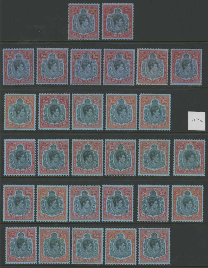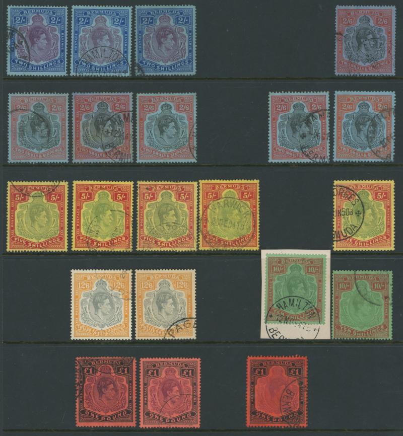 grey-blue, 2/6d scarlet-vermilion & 2/6d bright orange-vermilion (SG 89k; Cat £2500), 10/- on deep emerald x2 & extra 12/6d x2 * plus 4/-, 10/- on pale-emerald & 10/- on deep emerald used, 1936-47 KGV Pictorials * & used, 1938-52 KGVI Pictorials * &