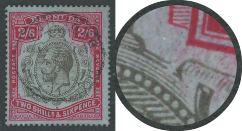 1924-32 KGV Scroll Design Keyplates Multiple Crown CA Watermark 2/6d black & red/blue with Break in Scroll at Right SG 52a, light