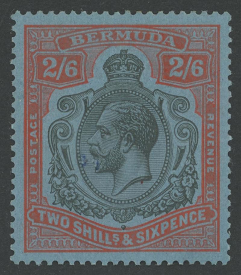 1924-32 KGV Scroll Design Keyplates Multiple Script CA Watermark 2/6d black & bright orange- vermilion/deep blue SG 89k, fresh