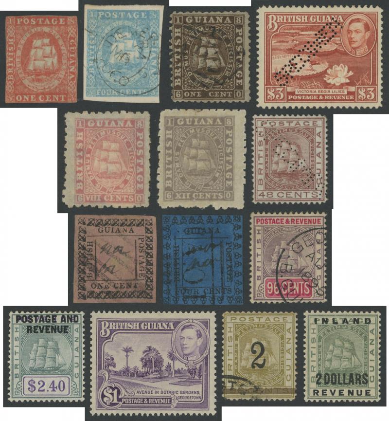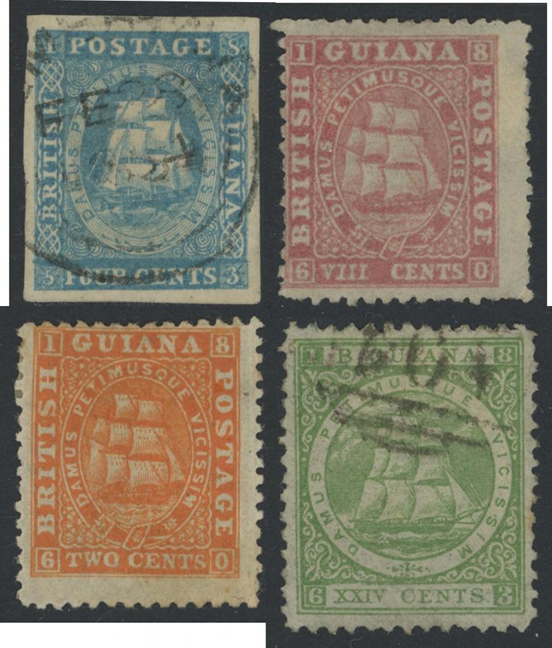 counted) & 4c pale blue (margins close to large) with light Demerara cds, 1860-63 Ship Framed Corner Figures 1c black */unused x3, 2c orange * and 1c brown, 1c rose, 1c red-brown, 4c blue, 8c pink, 12c lilac & 24c green used, 1862 Typeset 1c rose &