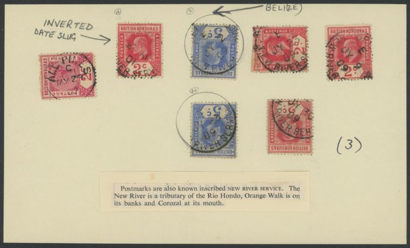 'K65' and '.../NEW RIVER SERVICE' x6, 1895 Lainfiestas Union Hotel cover registered with QV 5c pair & superb 'K65'-in-bars, 1932 with double-circle 'PAA OFFICE/...' (Pan American Airways Office) in red, 1941 to GB with double-circle 'STANN CREEK