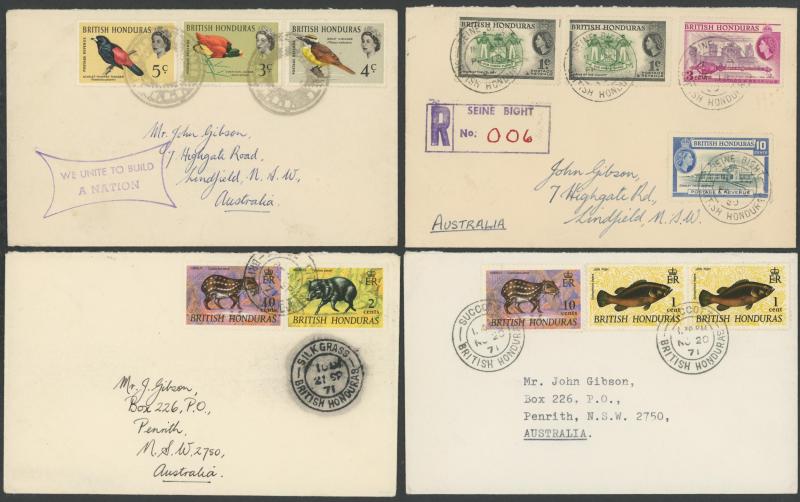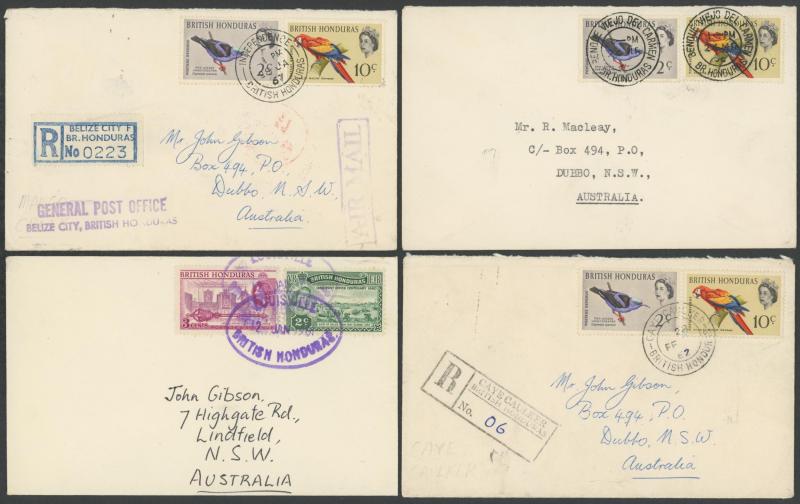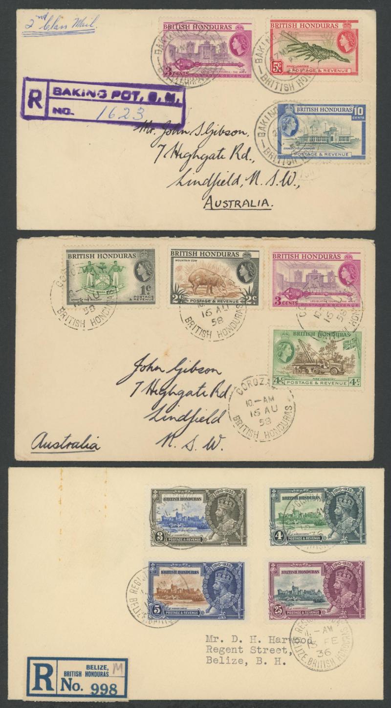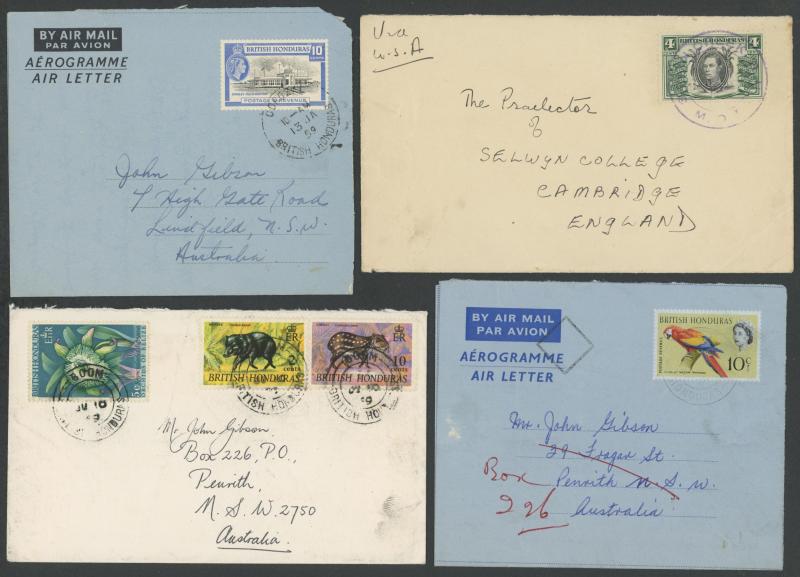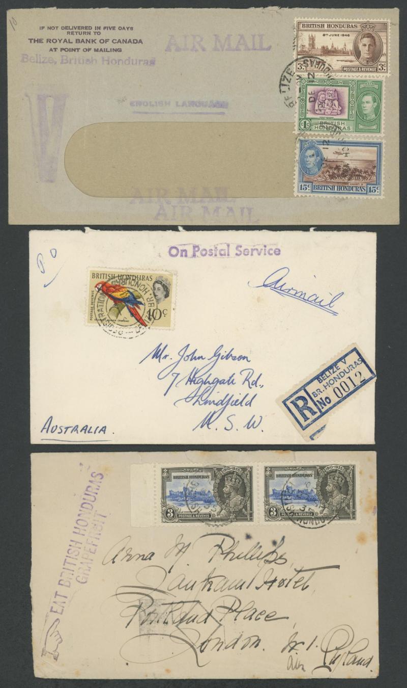BH/MOB' in violet, 1959 & 1967 social usages to Australia of different formular aerogrammes from 'COROZAL' or El Cayo (illegible cds), many 1950s to 1960s philatelic covers from villages including 'BAKING POT' (registered), 'BENQUE VIEJO DEL CARMEN',