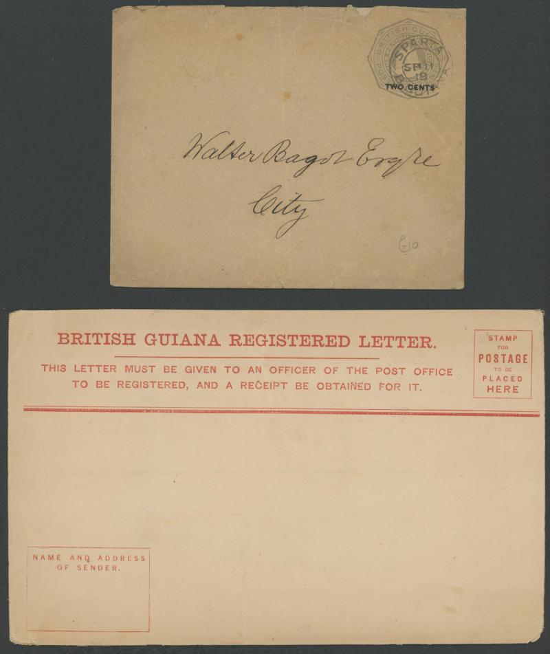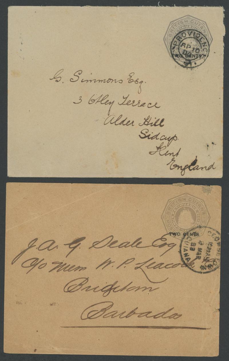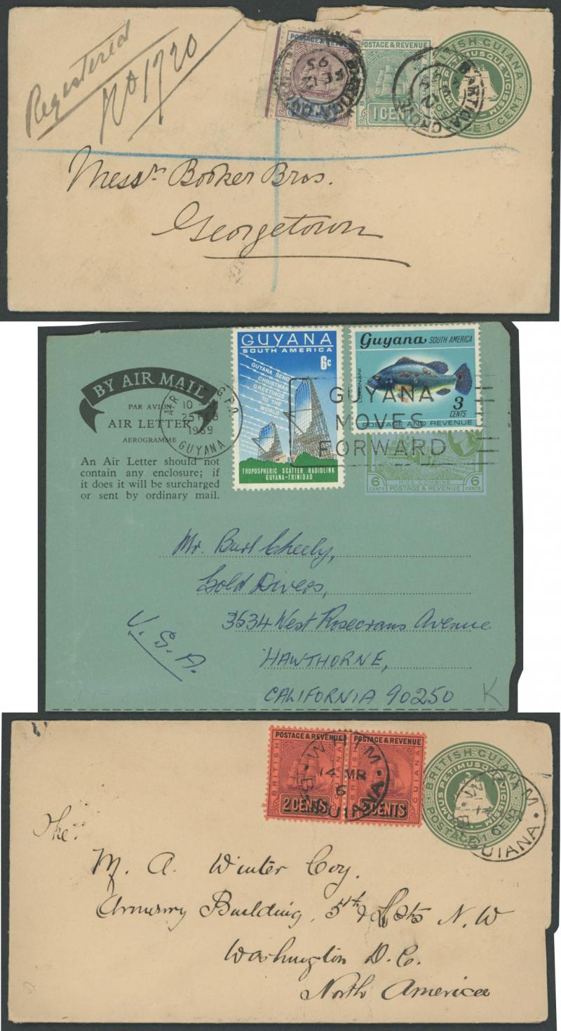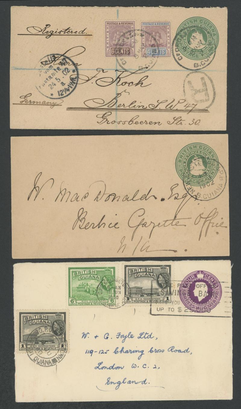 including commercial usages from 1895 'BARTICA GROVE' (registered), 1900 'PROVIDENCE' & 'SPARTA', 1902 'NEW AMSTERDAM PB', 1906 'WHIM', 1947 'MACKENZIE' and 1958-59 QE 4c from 'NIGG', 'UITVELDT' (skeleton cds) & 'WISMAR'; Registration Envelopes QV 4c
