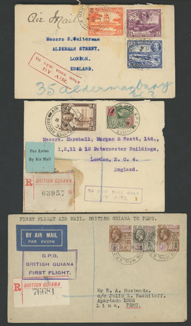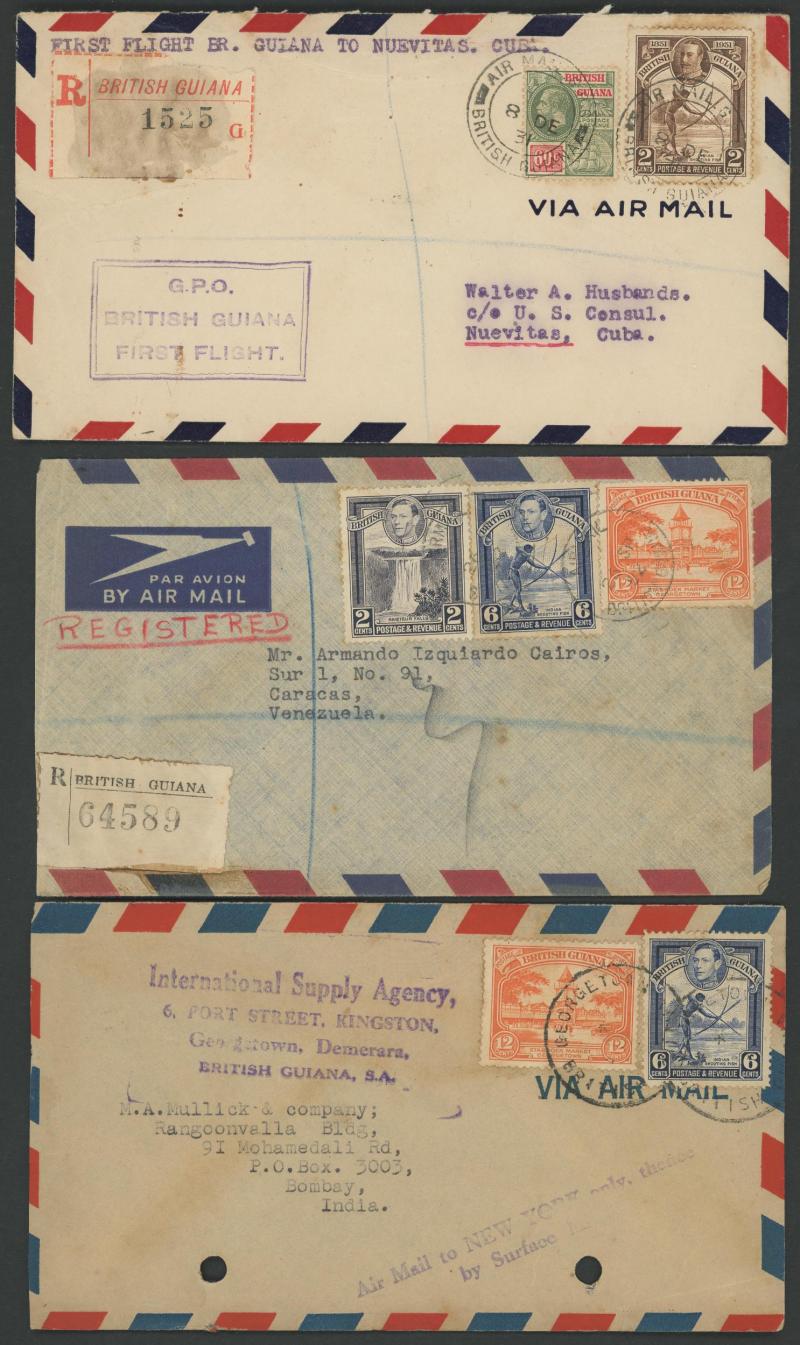 POSTAL HISTORY: 1930s-50s mostly airmail covers with first flights to Barbados, Cuba, Jamaica, Peru, etc, commercial covers
