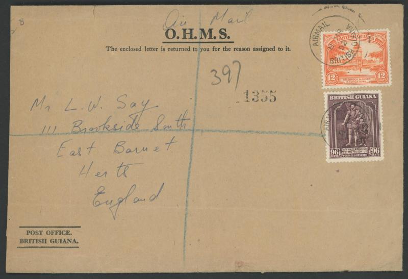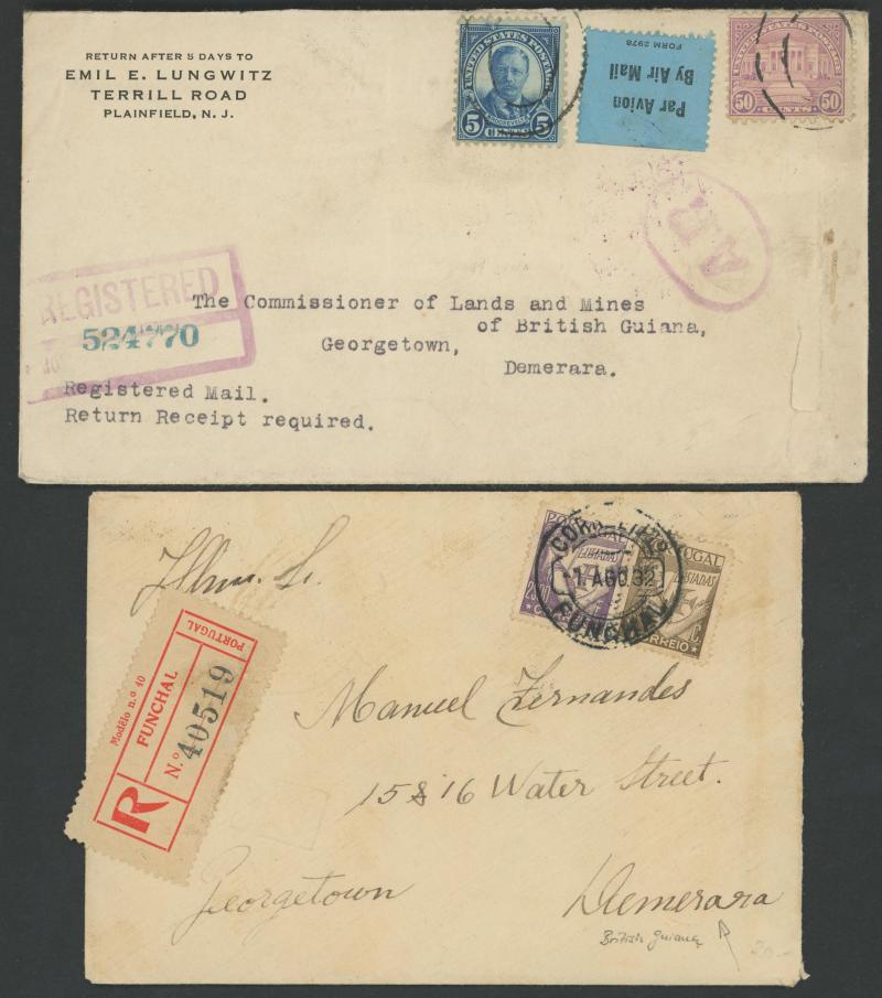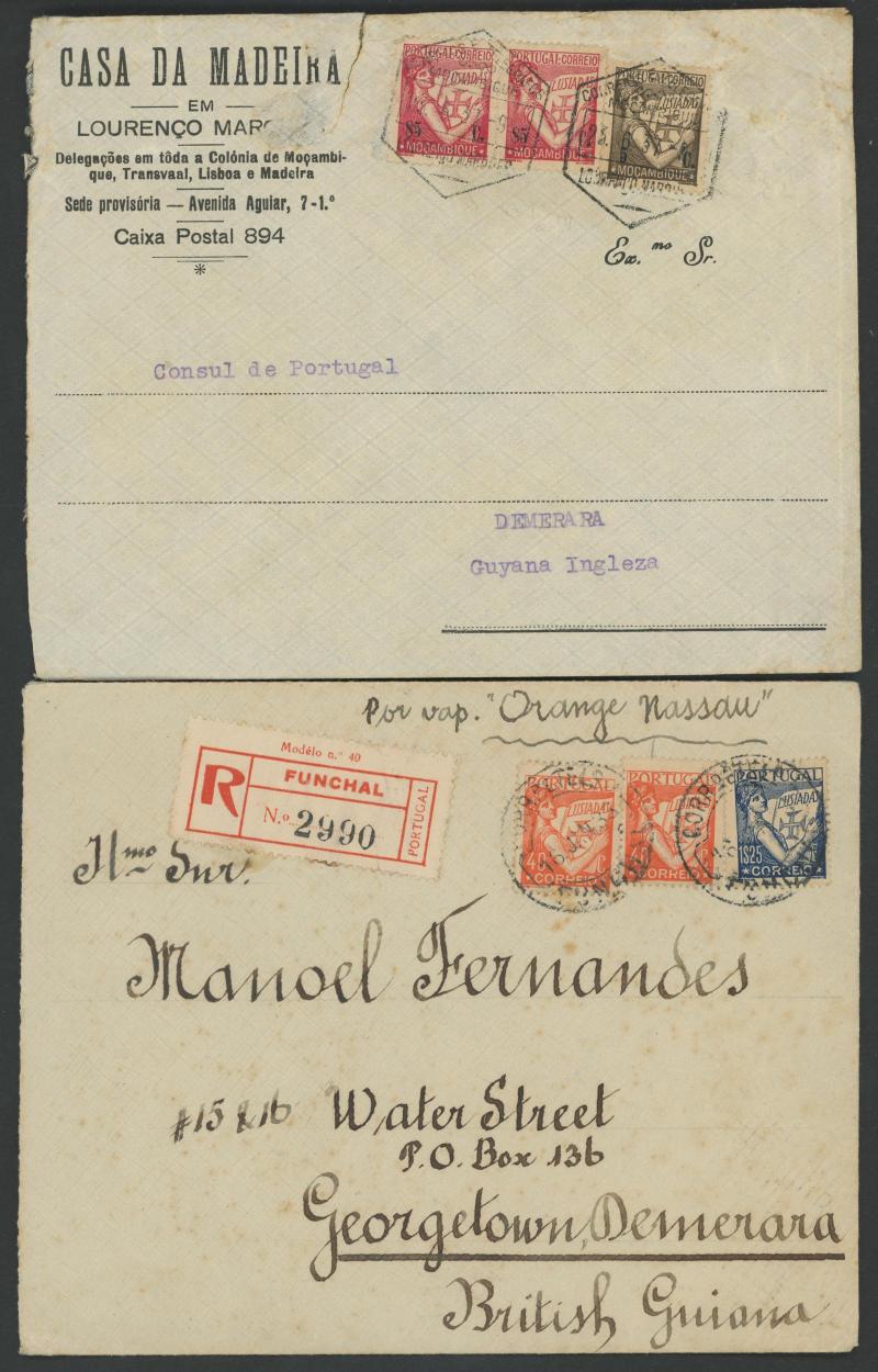 12c 60c x2 & $3 and 1952 registered OHMS with 12c & 96c; plus 1930s inwards airmails including from Funchal registered x2, Mozambique and United States x2 (one with 5c & 50c paying 30c airmail plis 15c registration & 10c Avis de Reception fee);