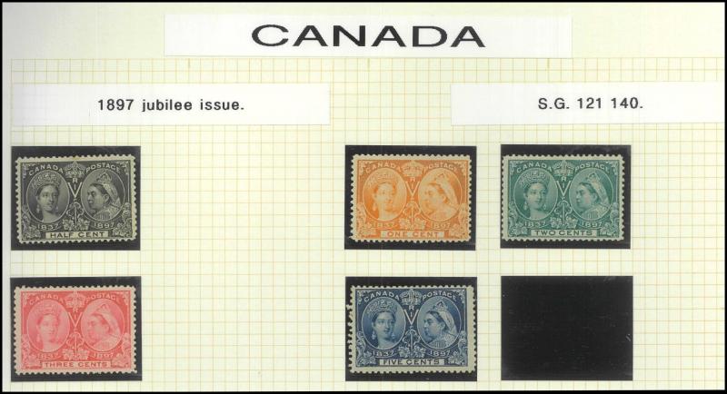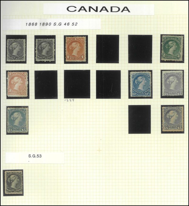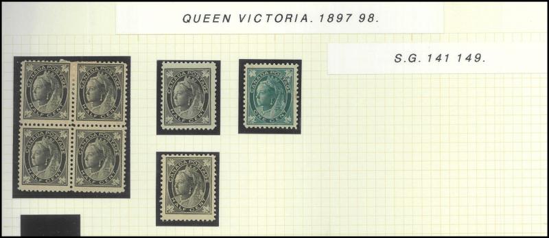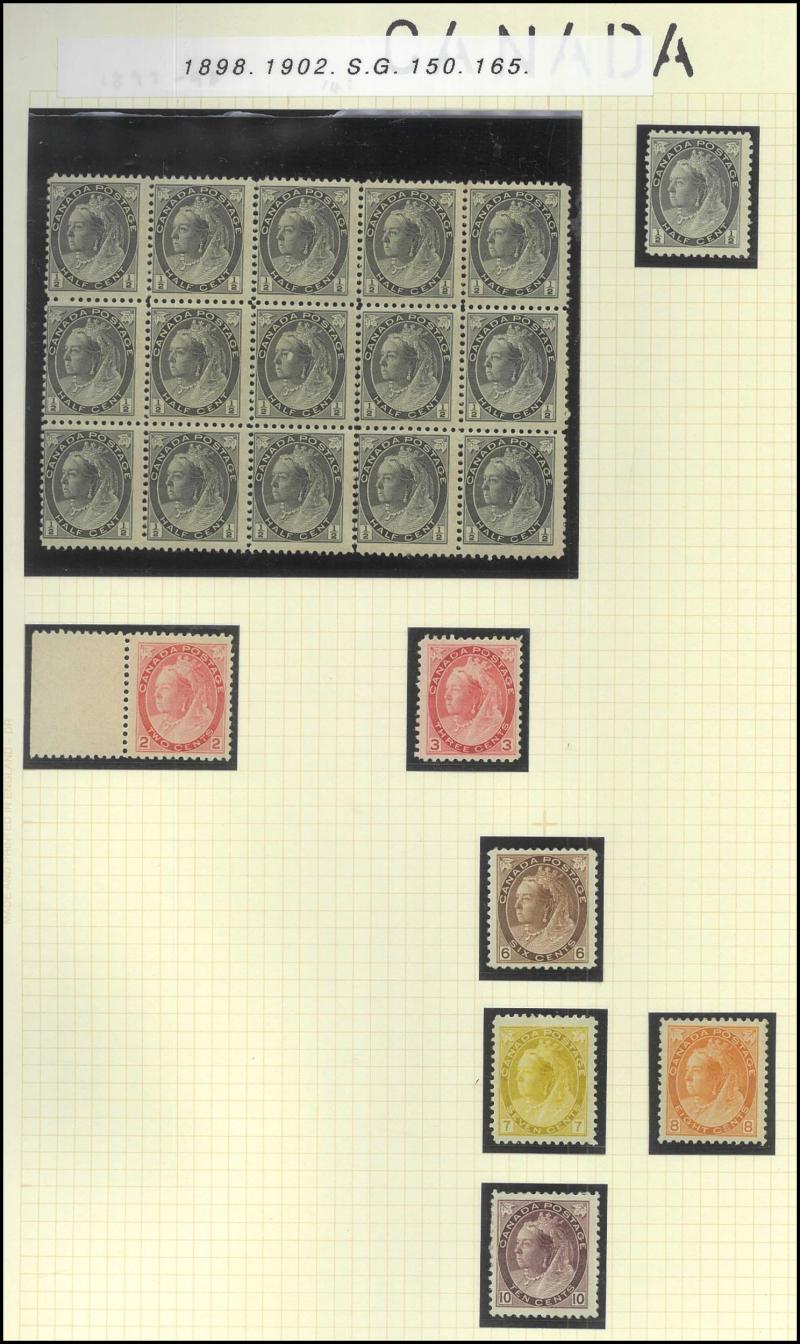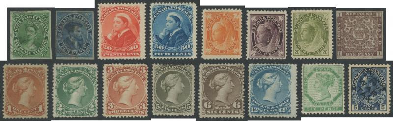 uneven perfs) including three shades of the 15c plus extra ½c x2, 1c, 2c, 3c and 12½c pale blue *, 1870-90 Small Queens 3c & 10c *, 1893 Veiled Queen 20c & 50c *, 1897 Maple Leaves 8c orange ** (Scott Cat US$800) & 10c purple-brown ** (US$1500), 1898