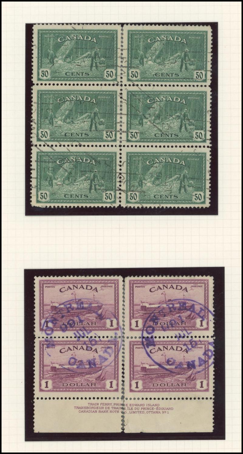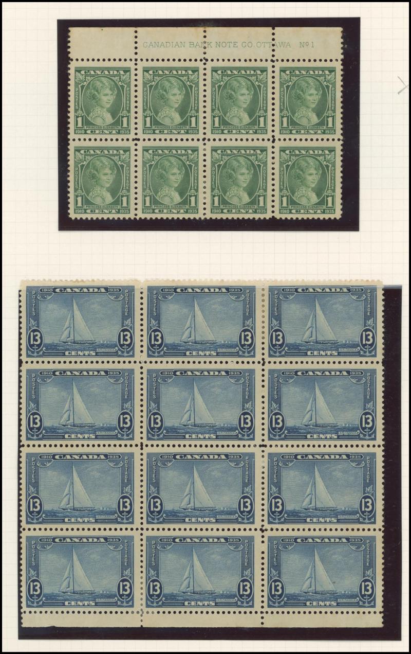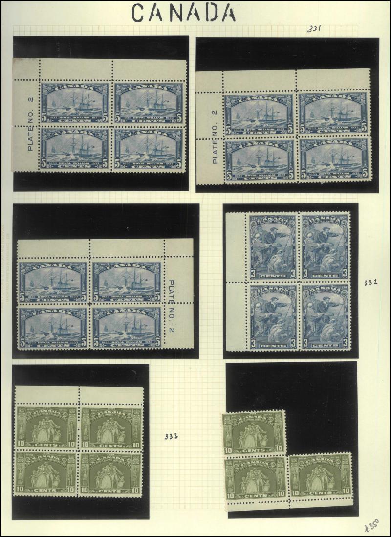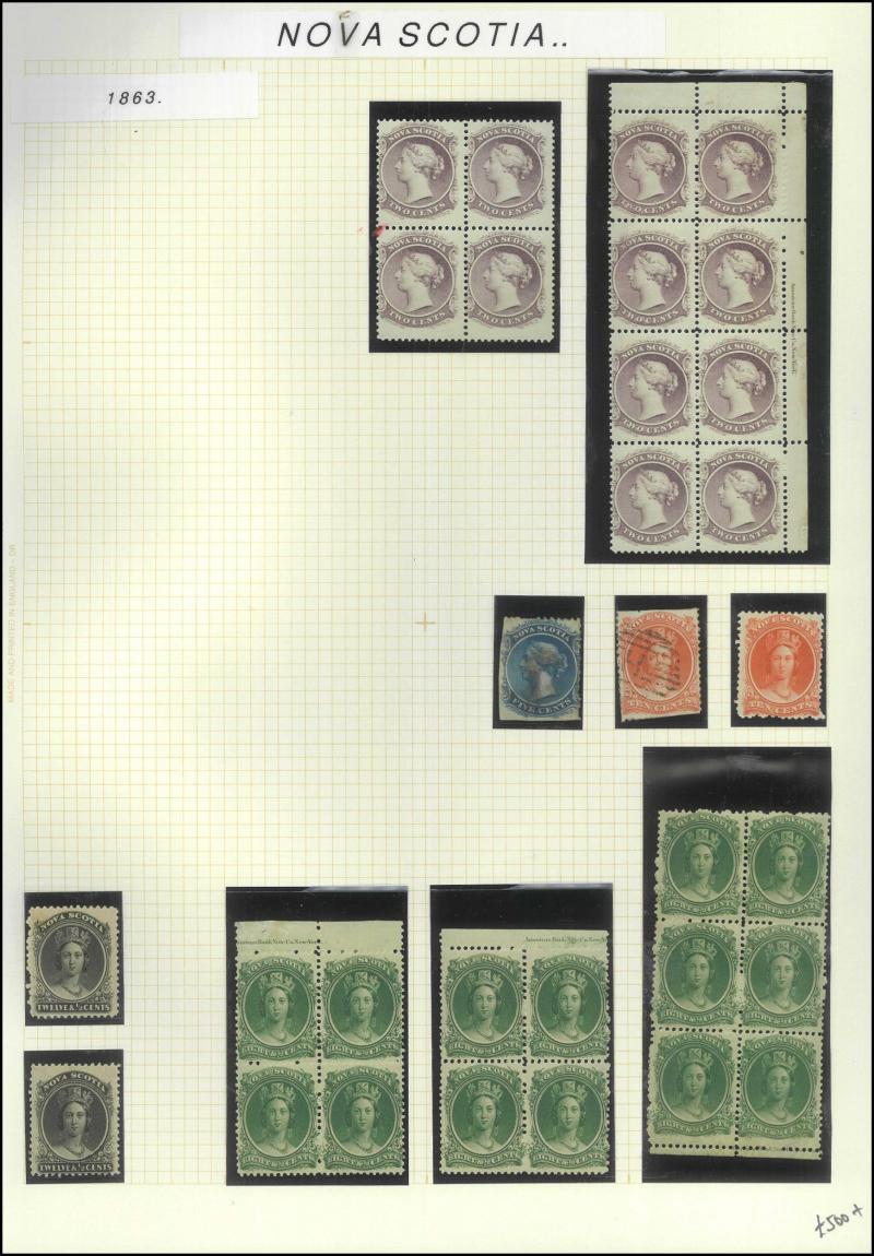 1910 Pictorials, 1919 Caribous, 1931 Airmails, 1931 Re-Engraved Pictorials, 1933 Airmails & 1937 Coronation, Nova Scotia 1863 QV 2c block of 8 with American Bank Note Co Imprint */**and 8½c blocks of 4 x2 */** with partial imprints plus 12½c singles