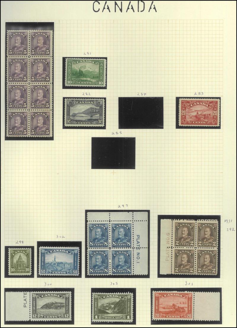 plus 5c with additional 'INLAND/REVENUE' overprint, 1932 set plus 4c 'PLATE NO.2' block of 4, 1935 set * & used, 1937-38 set including 13c Plate Number & Imprint block of 4 */**, many other multiples noted coil strips, booklet panes, plate numbers &
