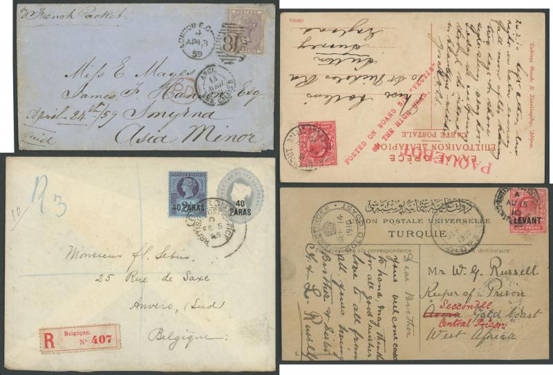 POSTAL HISTORY: Predominantly commercial/social mail from 1859 Great Britain to Smyrna endorsed "per French Packet" with QV