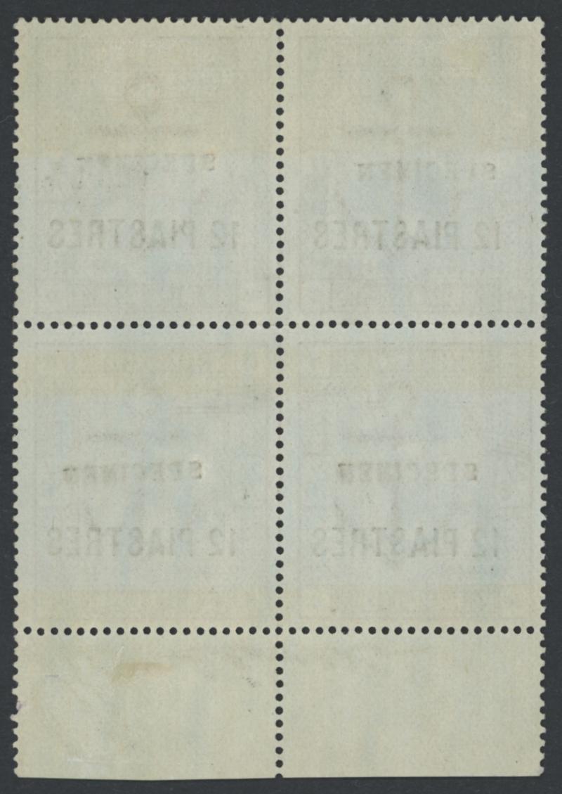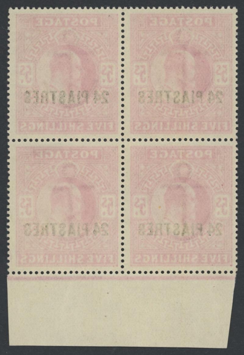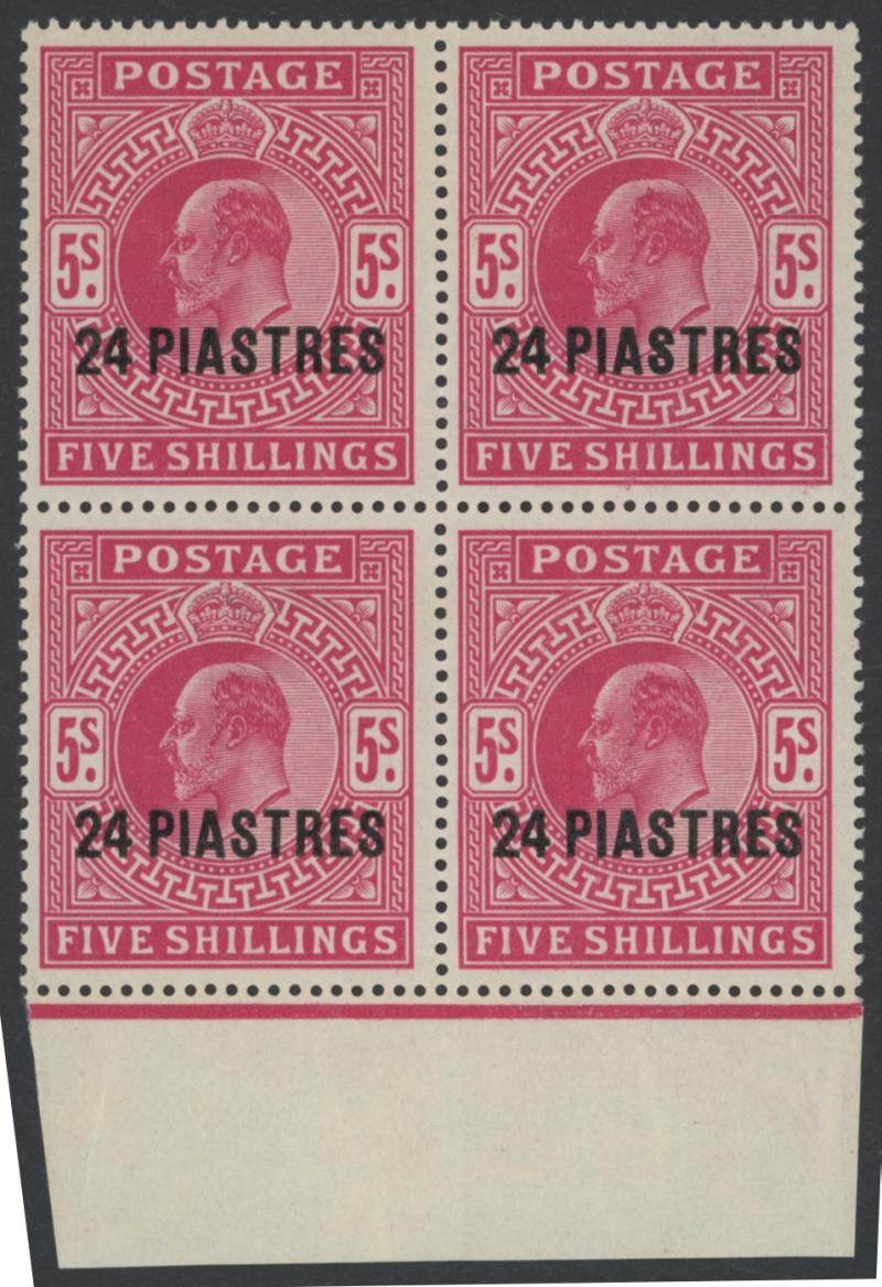 1902-05 Turkish Currency Overprints on Great Britain '24 PIASTRES' on KEVII 5/- bright (aniline) carmine SG 12 marginal block of 4