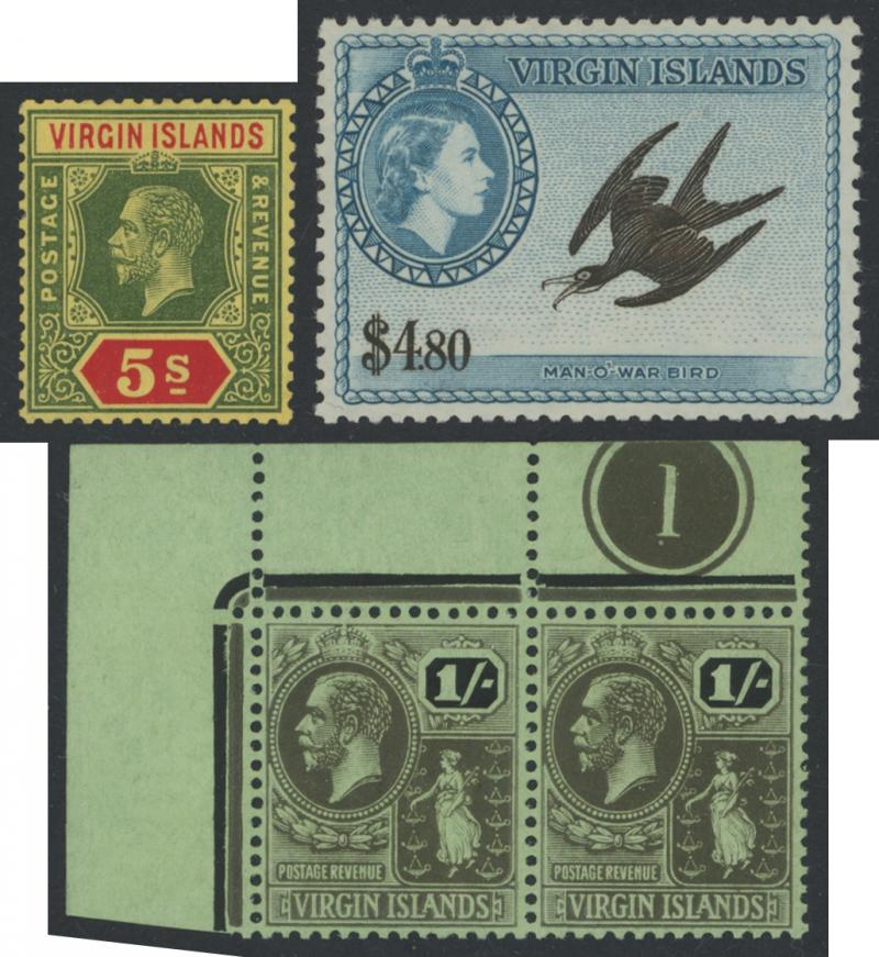 Into Margins 1/- * x3, then 1887-89 Crown CA Wmk 1d, 4d, 6d & 1/- * plus extra shades and 1/- 'SPECIMEN' overprint, 1888 Surcharge '4D' handstamp on 1/- * & used, 1899 set * & 'SPECIMEN' overprints plus 5/- used on piece, 1904 KEVII Keyplates set *,