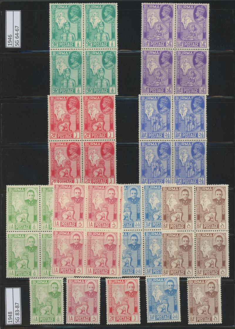 blocks of 4 */** (the 5/-, 10/- & £1 ** plus extra £1 block **), 1948 Wedding Bradbury Wilkinson Imprint & Plate Number '1a' blocks of 4 **, 1952 KGVI Pictorials set used & De La Rue Imprint blocks of 4 **, 1956-62 QEII Pictorials ** & used, 1962 US$
