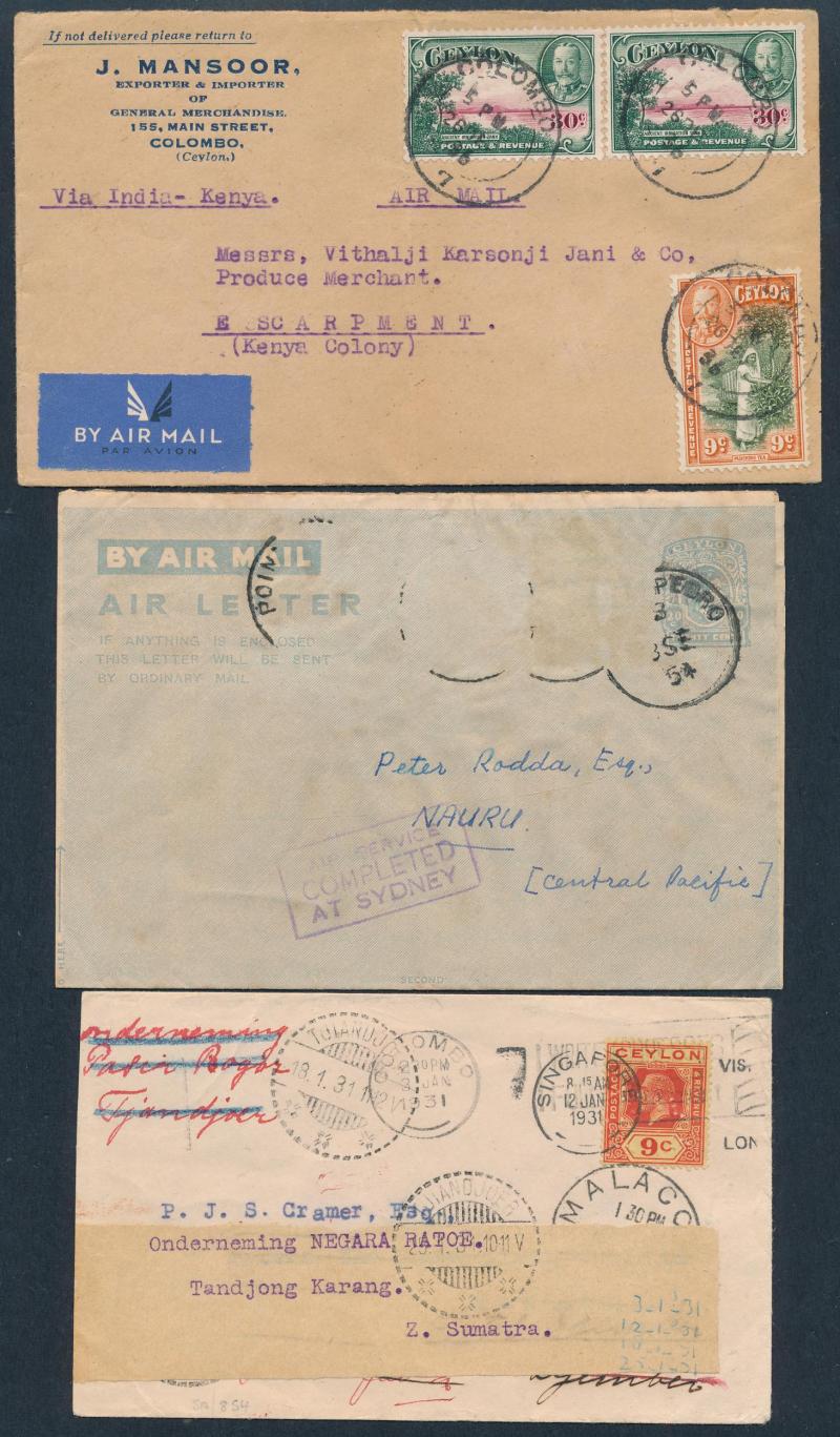 Portuguese India (1951); Aerogrammes to Burma (1954), East Germany (1959), Indonesia (1954, with Royal Visit 10c which is scarce on cover), Nauru (1954, stamps sadly washed-off) and Newfoundland (1948); PPCs to German Post Offices in China (1911) and