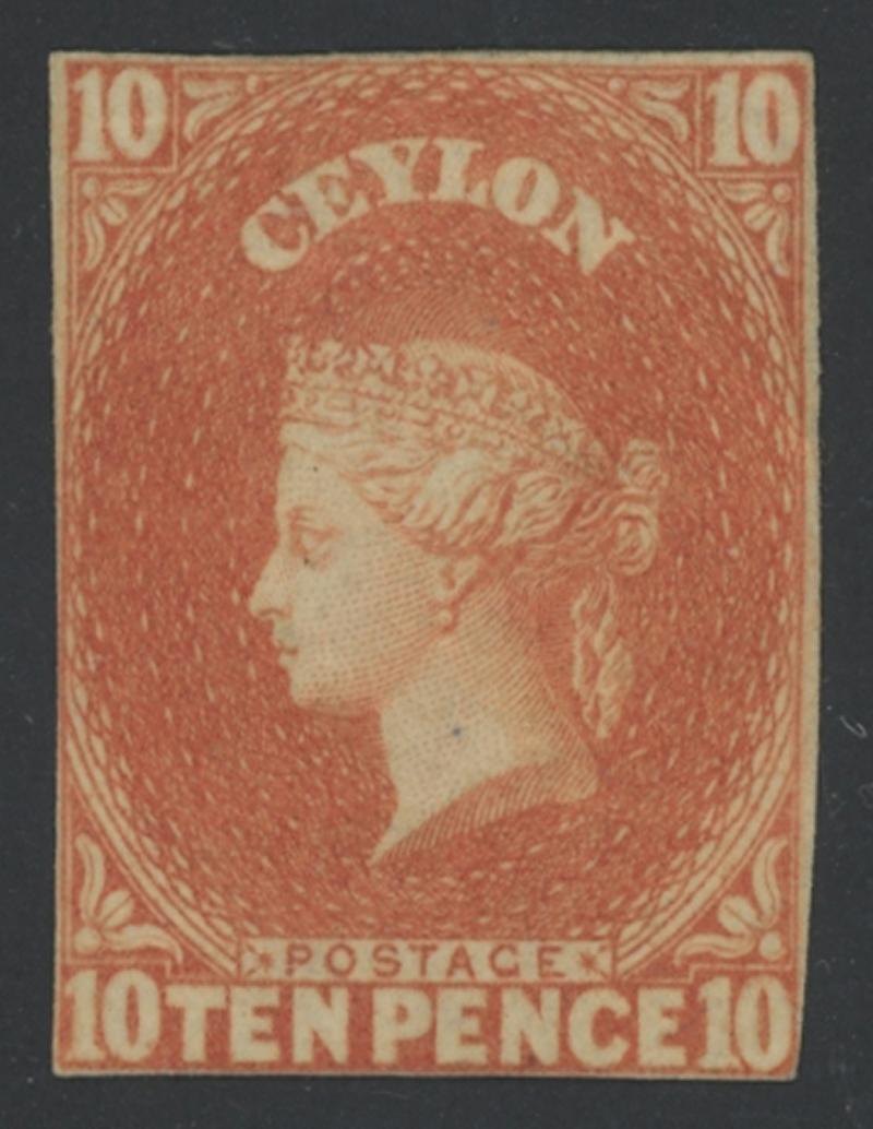 1857-59 QV Perkins Bacon White Paper with Large Star Watermark Imperf 10d orange SG 9, an attractive example with margins just