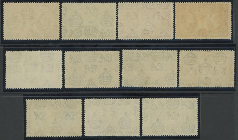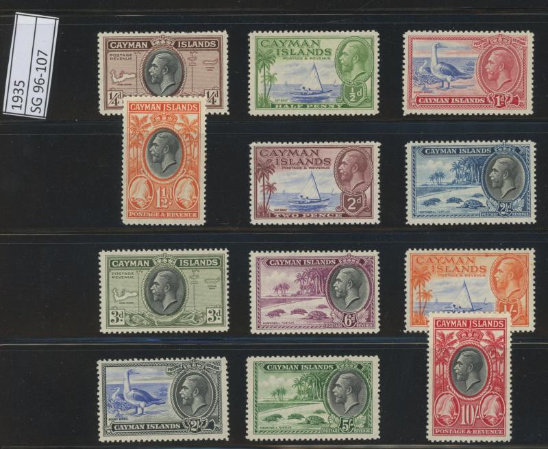 1935 KGV Pictorials ¼d to 10/- set SG 96-107, generally very well-centred including the 5/- & 10/-, the lower values with light