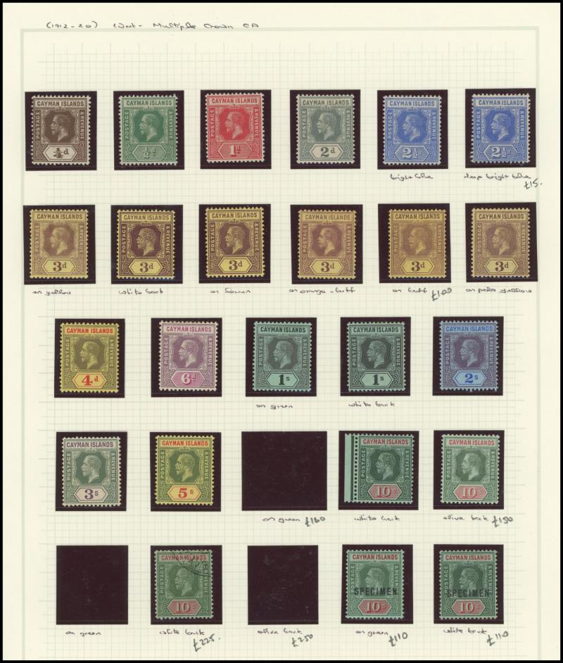 set * & used (ex Crown CA Wmk 1/-), 1912-20 KGV Keyplates Multiple Crown CA Wmk set * with extra shades & papers including 3d purple/buff, 10/- White Back & 10/- Olive Back plus 3/-, 10/- White Back & 10/- Olive Back used and 10/- 'SPECIMEN'