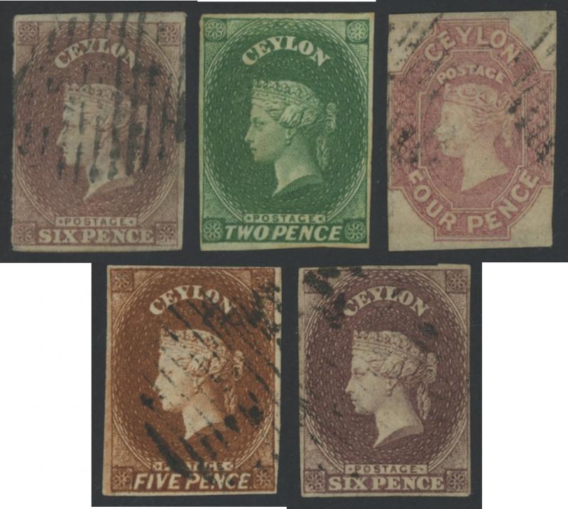 handstamp), and White Paper 2d deep green unused with full margins, 4d rose an unusually tall example shaved at the sides (professionally repaired; Cat £4500), 5d chestnut (margins close to large) and 6d purple-brown with margins close to good, Cat