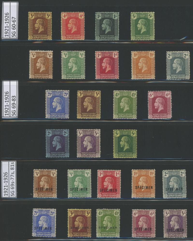 overprint x2, 1921 KGV Heads Multiple Crown CA Wmk set * plus 5/- deep-green/pale yellow & 5/- deep-green/orange-buff and Multiple Script CA Wmk set * and 'SPECIMEN' overprints plus 5/- & 10/- used, 1932 Assembly set * plus 5/- used, 1935 KGV
