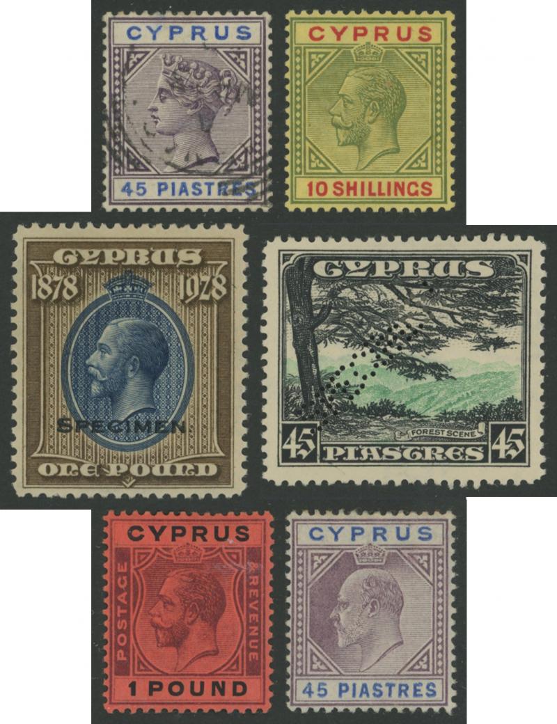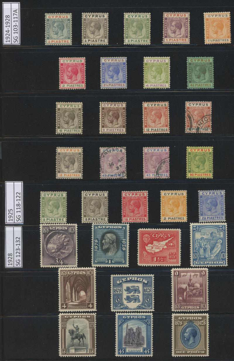 Crown CA Wmk set *, 1924-26 KGV Keyplates Multiple Crown CA Wmk Chalk-Surfaced Paper £1 * x3 (one marginal), 1928 British Rule set * plus £1 blue & brown tied to small piece by very fine 'LARNACA' cds, and 1963 Scouting M/S and set of singles with