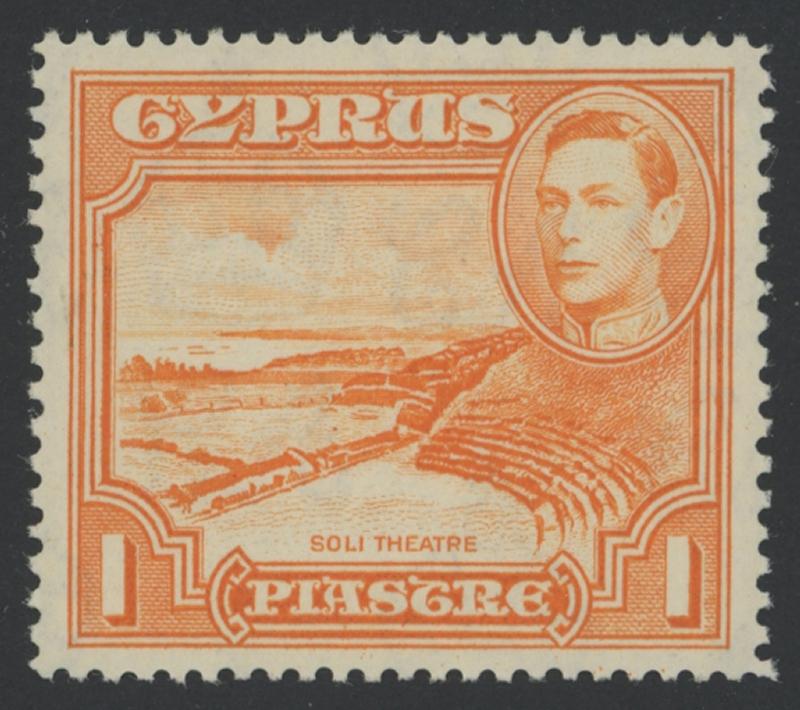 1938-51 KGVI Pictorials Soli Theatre 1pi orange Perf 13½x12½ SG 154a, very well-centred for this issue, unmounted, Cat £550. Ex