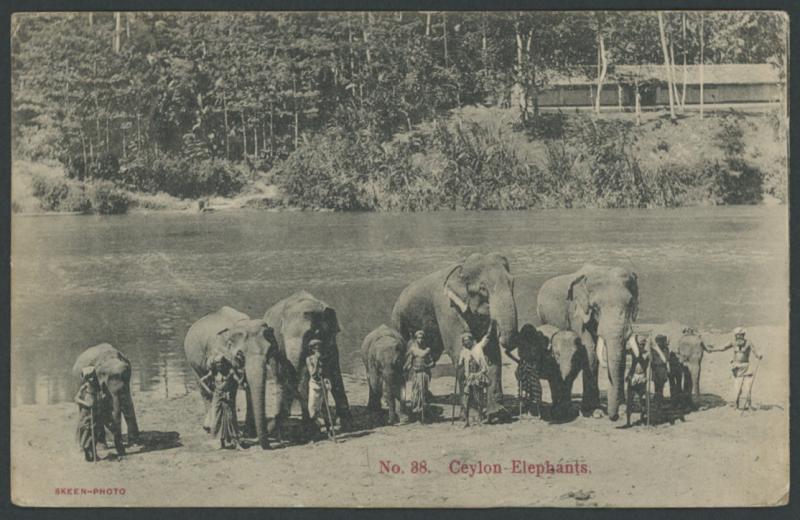 1914 (July 21) 'Ceylon Elephants' picture postcard presumably posted on board ship with KGV 6c red tied by Netherlands Indies