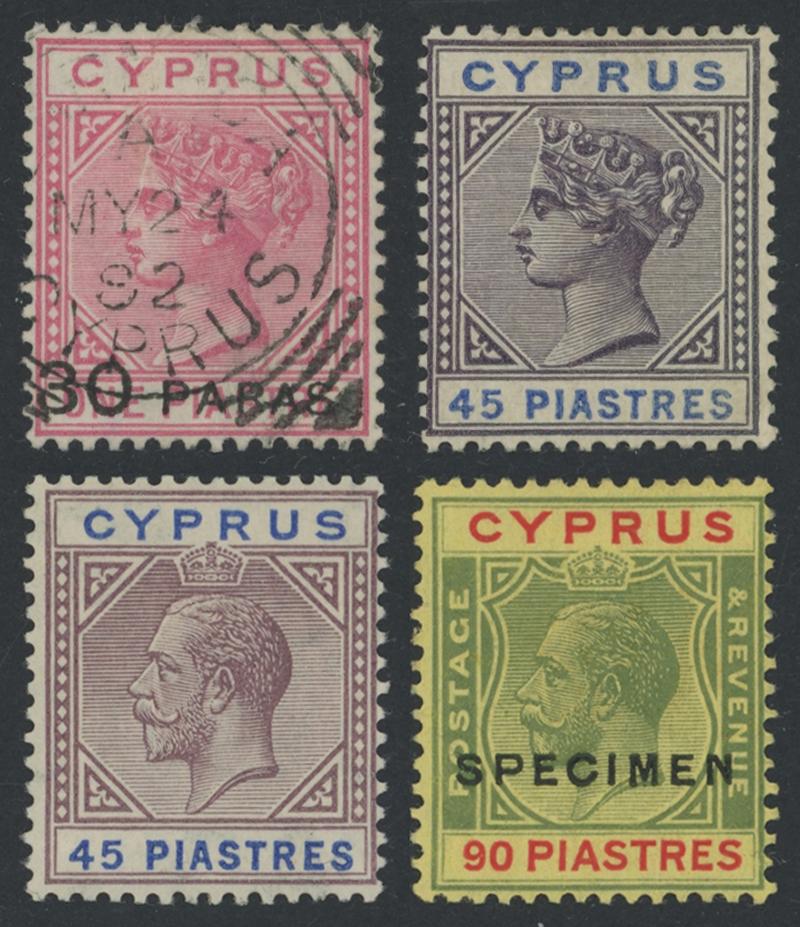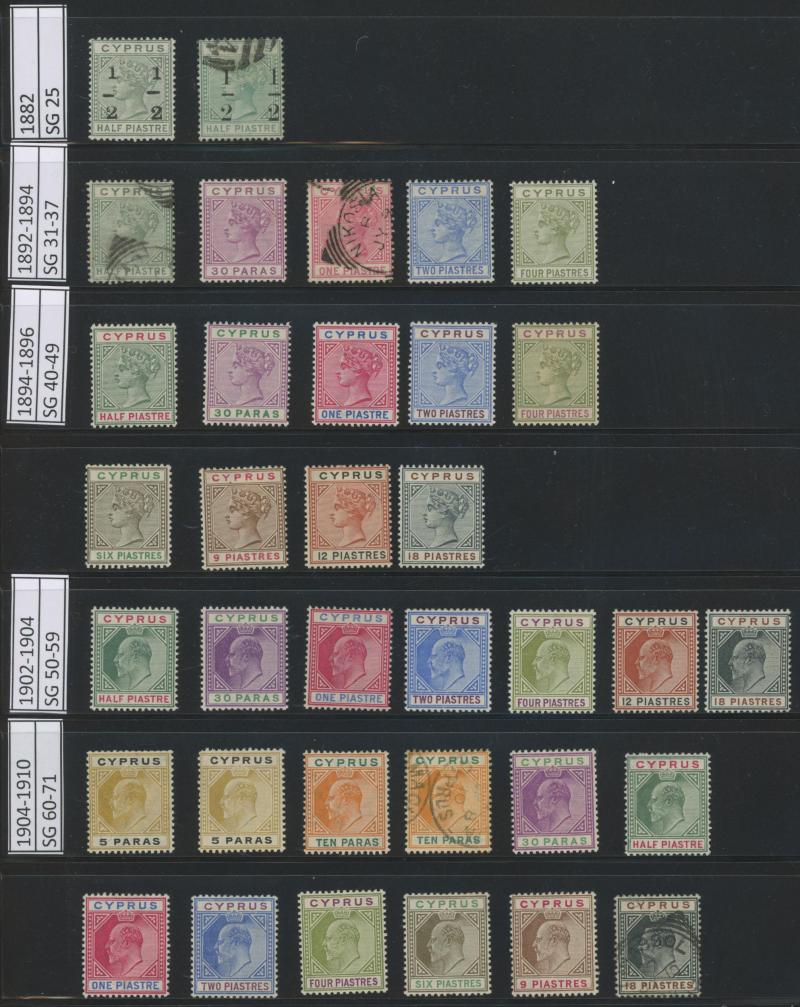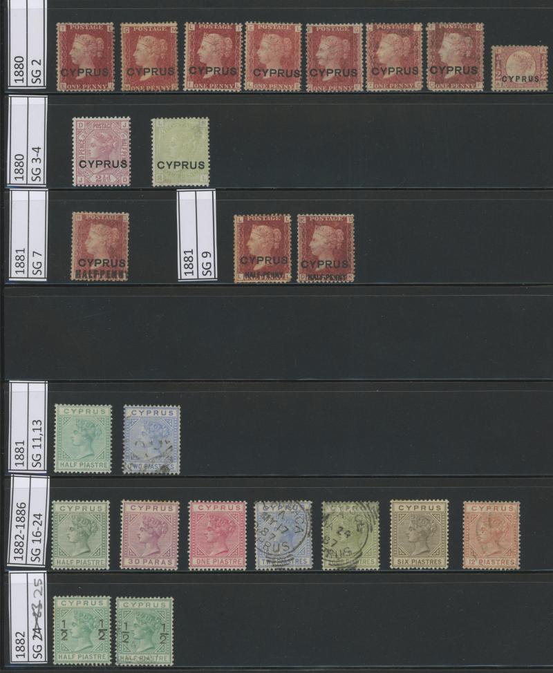 sage-green, 1881 SG 7 and 9, 1881 ½pi emerald-green * and 2pi O, SG 16a-18 and SG 21, SG 19,20 and 22 used, 1882 ½pi on ½pi emerald-green mint and used, 30pa on 1pi rose, 1892 4 pi olive-green, 1894 Keyplate set, 1902-1904 KEVII Keyplates short set