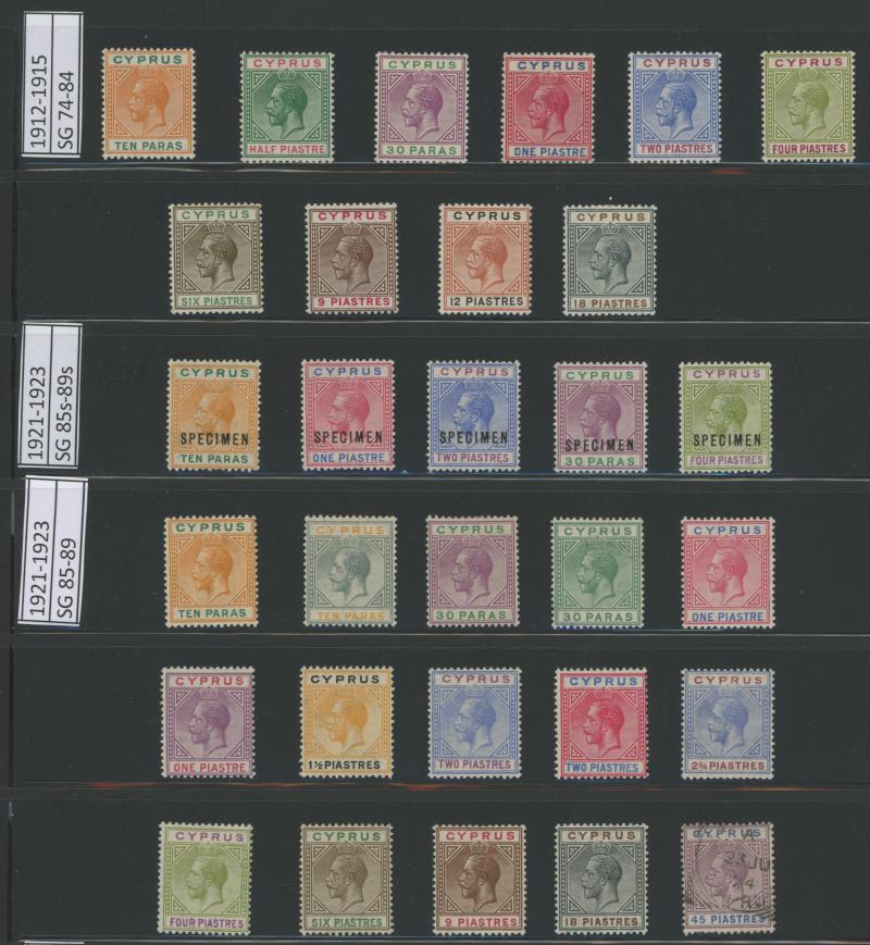 Chalk-Surfaced Paper set to £1 * plus 12pi, 45pi & 90pi used, 1928 British Rule set * & used plus 'SPECIMEN' overprints, 1934 KGV Pictorials set *, used (ex 45pi) & 'SPECIMEN' punctures, 1938-51 KGVI Pictorials set */** & used both including Perf