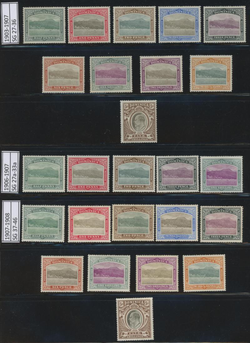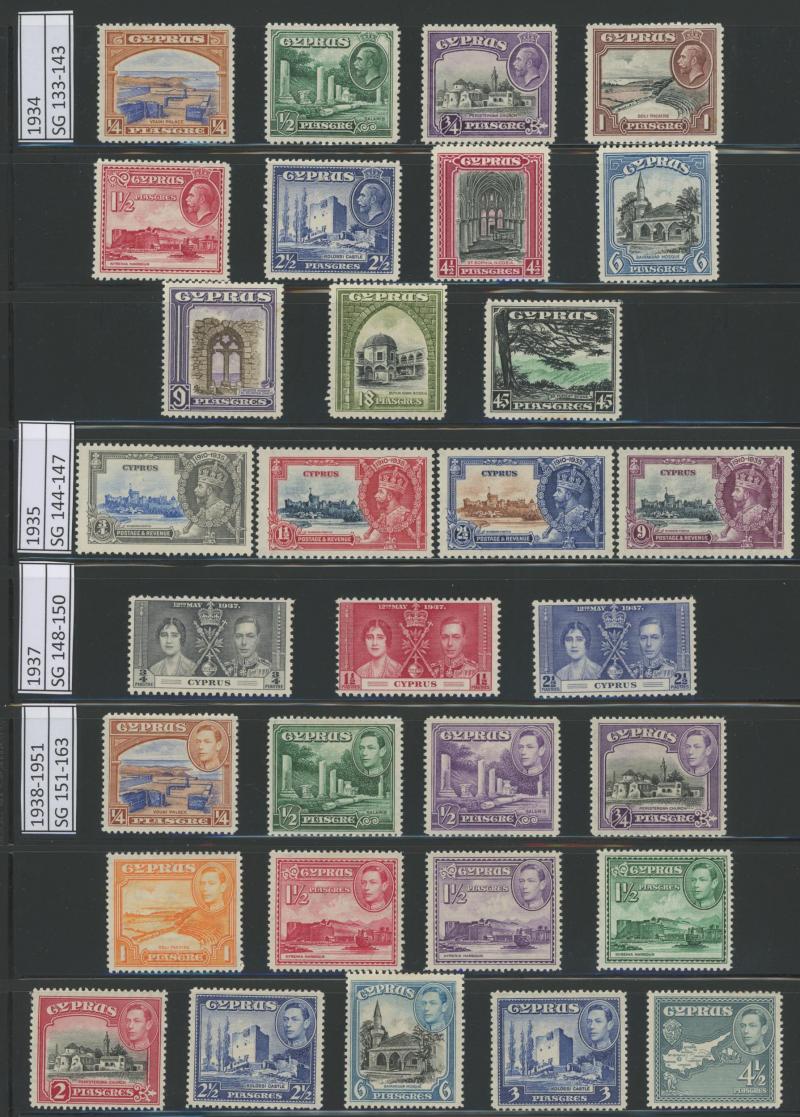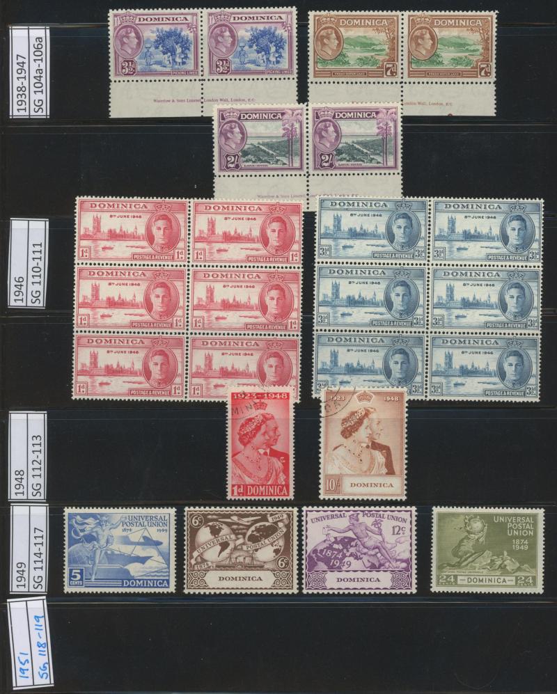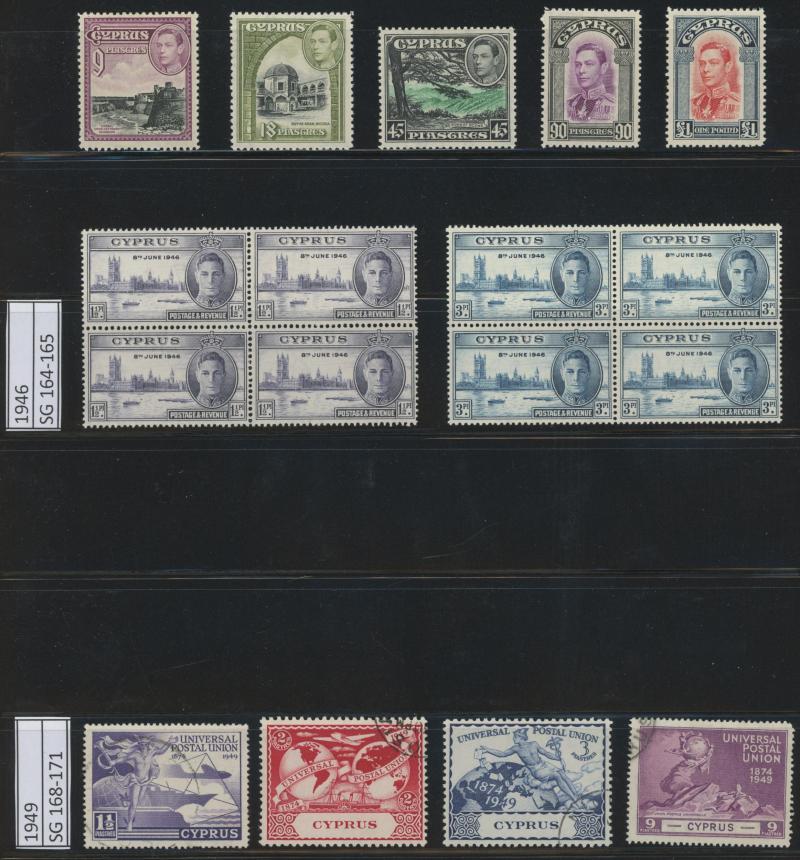 to 18pi, 1904-10 short set to 18 pi *O, 1912-15 KGV Keyplates set plus specimen short set to 4pi, 1921-28 Keyplates sets with 45 pis used, 1928-34 Pictorial sets, Jubilee set and KGVI coronation set, 1938-51 KGVI Pictorials set and 1949 UPU set,