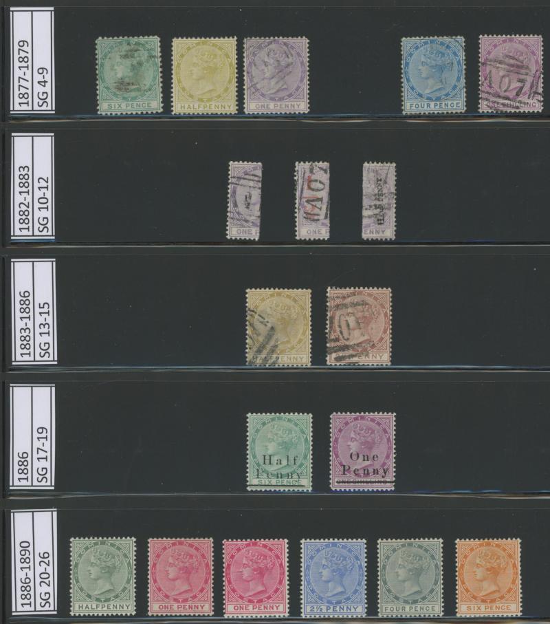 Mainly mint selection from 1874 QV 6d green, 1877-79 CC watermark ½d olive-yellow with Plate Proof, 1d lilac, 4d blue and 1/-