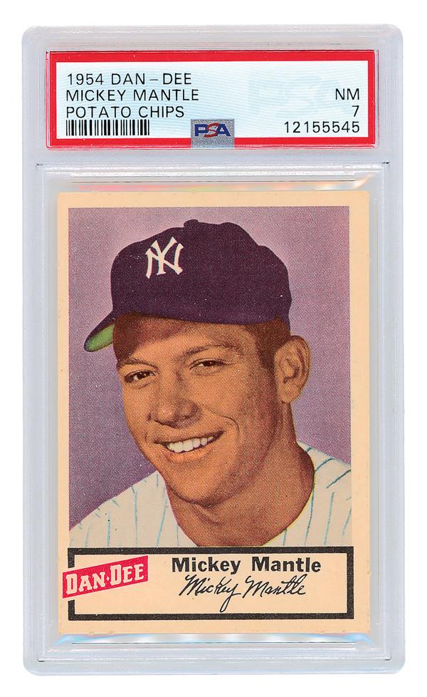 1954 Dan-Dee Mickey Mantle Potato Chips Card PSA 7 NM, phenomenal color; population of 35; extremely rare card to find in such a high grade; freshly graded by PSA, Near Mint 7.....Estimate $12,000-18,000