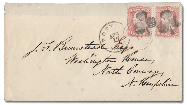 3¢ rose (65), with double perforations between on a cover to North Conway, N.H. (Image) (Image2)