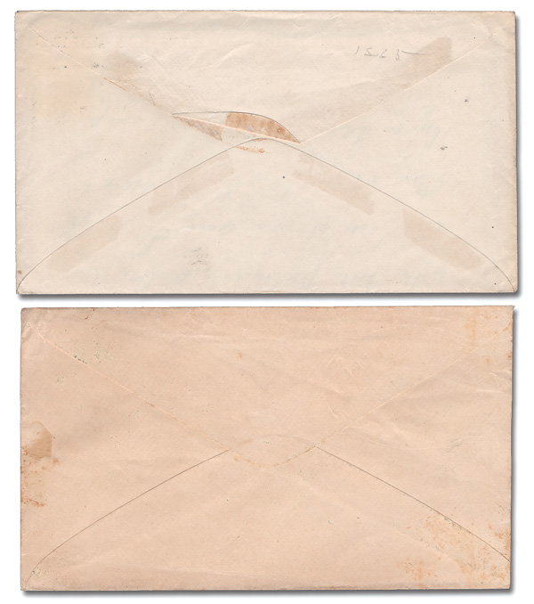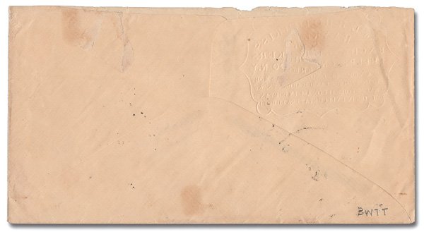 — a second, barely recognizable strike cancels the indicium — to Lenox, Mass. with an unusual Etna sawtoothed c.d.s., Sep 24, 1887; backstamped New York (Sep 25) and Lenox the next day; opened a bit roughtly at the top, otherwise Very