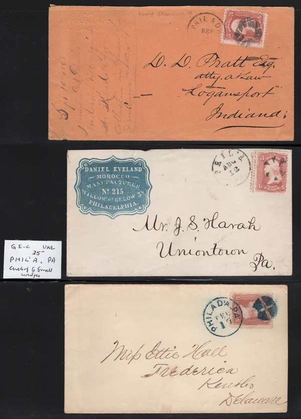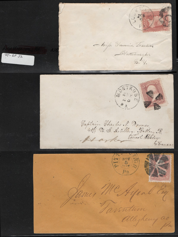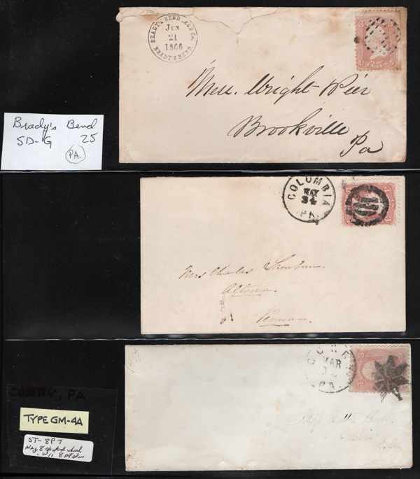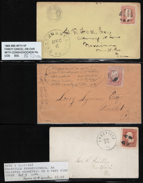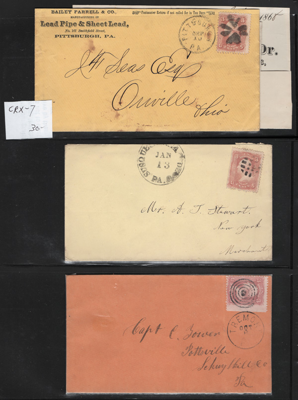 Geometric Cancels of Pennsylvania on 3¢ 1861s, 19 covers on 3-row, 2-sided stocksheets; six are Philadelphia, two of