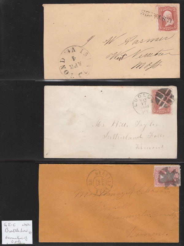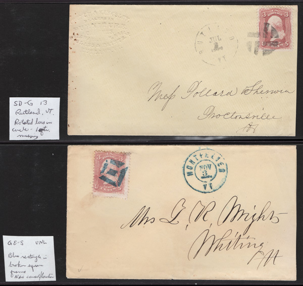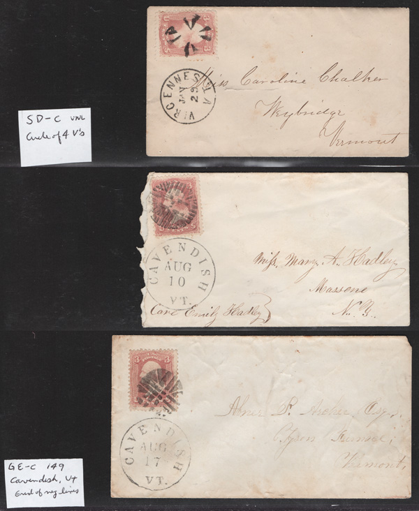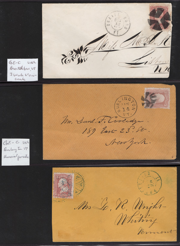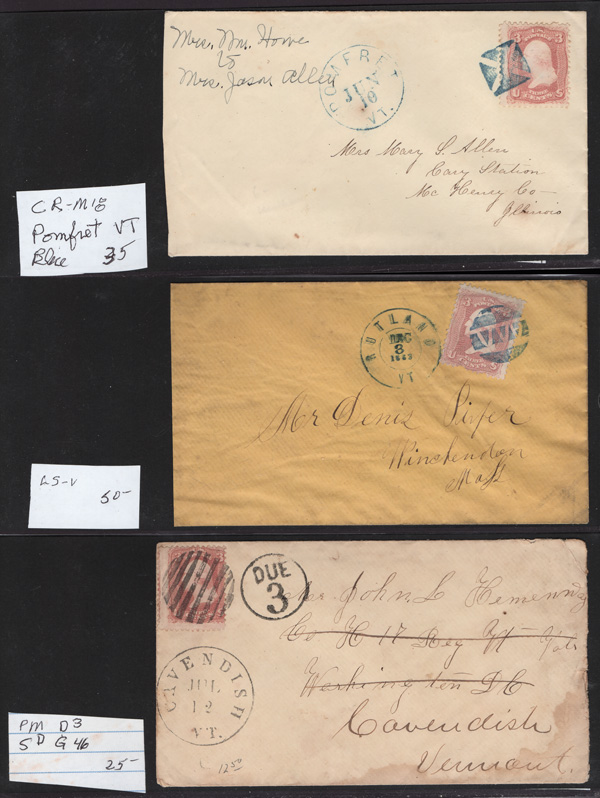 Geometric Cancels of Vermont on 3¢ 1861s, 14 covers (one non-Geometric: Island Pond "U.States") including four in