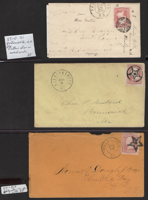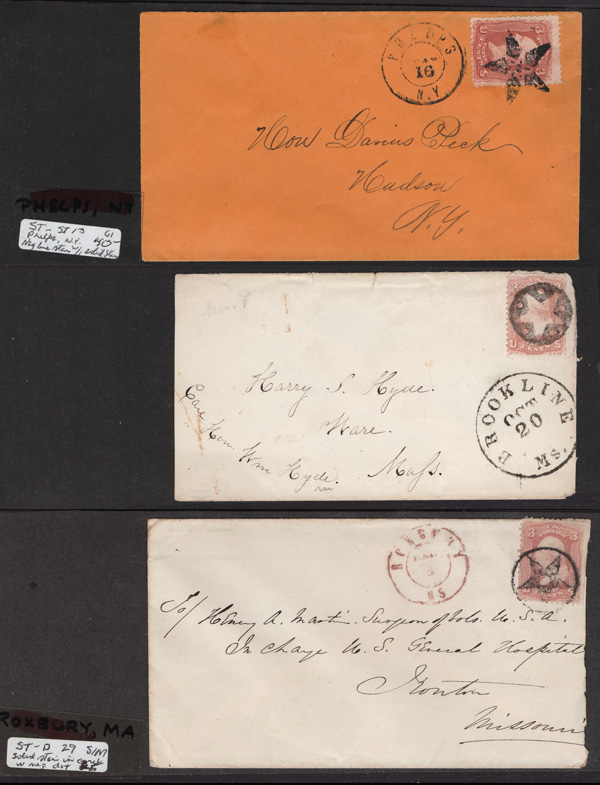 Star Cancels on 3¢ 1861s, Group of 20 covers, 20 covers on 3-row, 2-sided stocksheets; 20 are 5-point stars, eight of