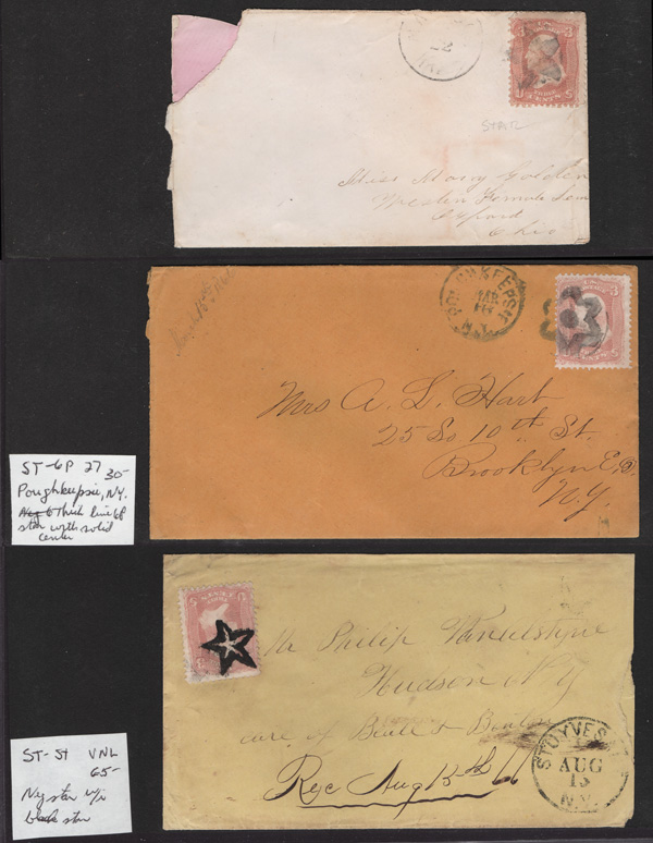 3¢ rose (65) alongside a Sep 18 Palenville c.d.s. on a small cover to Pleasant Ville, N.Y. (Image) (Image2)