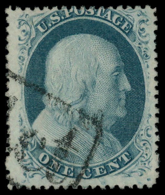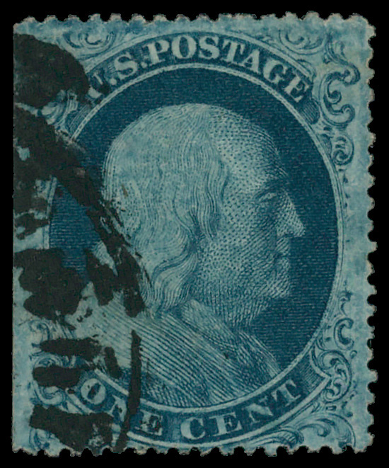 6001 O 7 image1851, 1¢ blue, type II (Scott 7), light 1853 town cancel, ample margins on 3 sides to just barely touching at top, Fine to Very Fine.